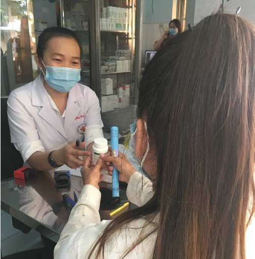 Cấp phát thuốc ARV cho bệnh nhân tại Phòng khám ngoại trú, Trung tâm Y tế Thuận An, tỉnh Bình Dương. Ảnh Thu Hương.