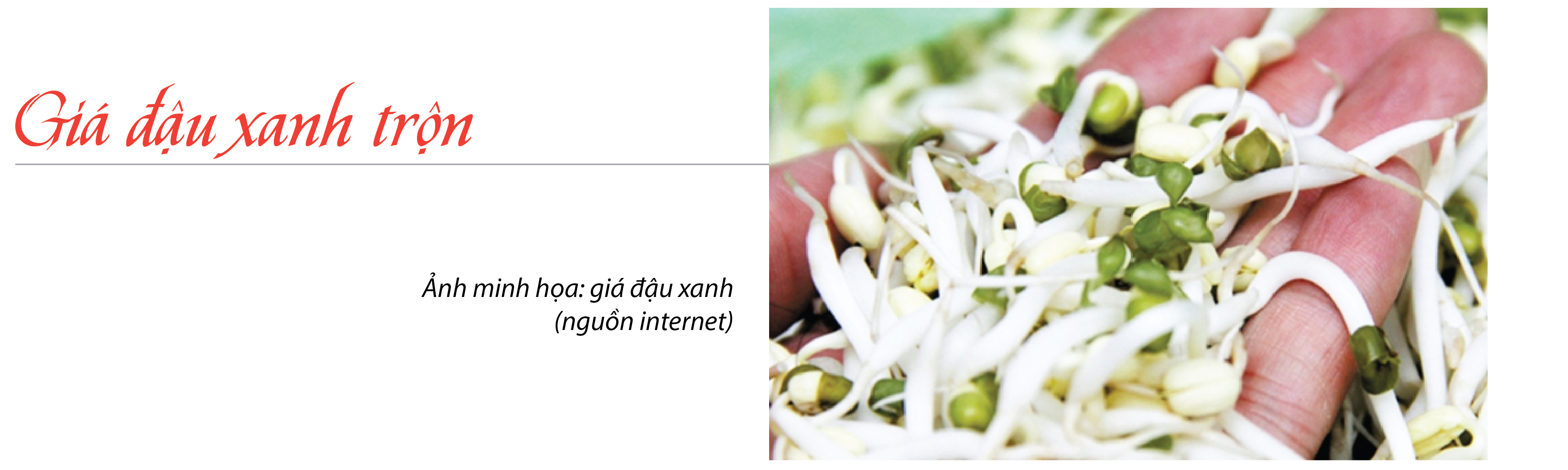  Cách chế biến: Giá đậu xanh bỏ rễ rửa sạch, cho vào nồi nước sôi luộc 2 phút vớt ra, đợi nguội cho xì dầu, giấm ăn, dầu vừng, hành, gừng, tỏi trộn đều. Làm thức ăn với cơm.