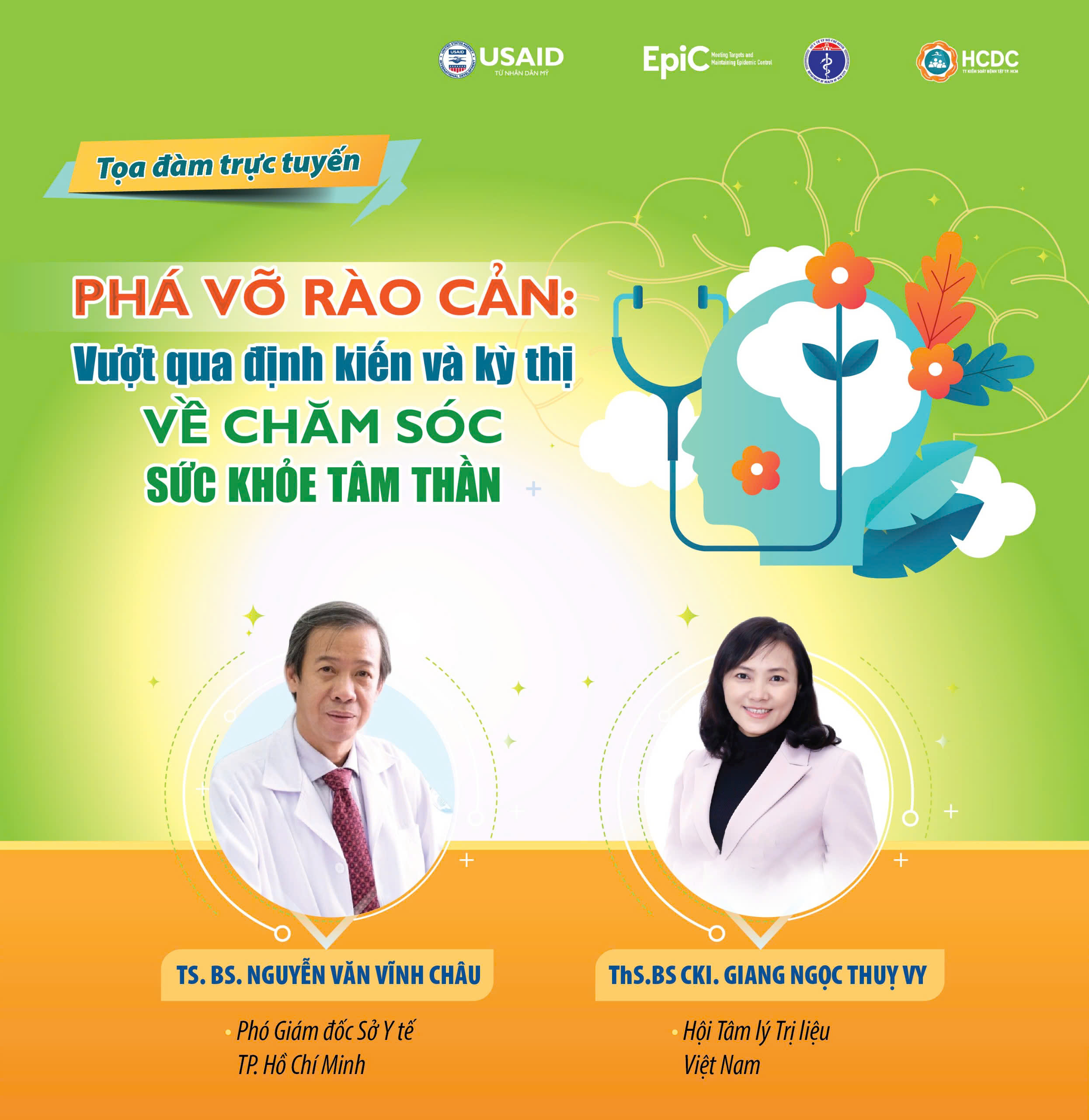 Để trả lời những câu hỏi này, HCDC mời quý khán giả tham dự tọa đàm trực tuyến với chủ đề "Phá vỡ rào cản: Vượt qua định kiến và kỳ thị về chăm sóc sức khỏe tâm thần", với sự góp mặt của 2 vị khách mời