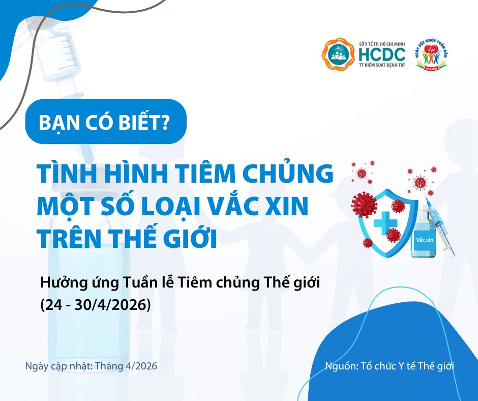 Tiêm chủng là chìa khóa để bảo vệ bản thân và gia đình khỏi những dịch bệnh nguy hiểm. Hưởng ứng Tuần lễ Tiêm chủng thế giới (24 - 30/4/2026), HCDC gửi đến bạn cái nhìn tổng quan về tình hình tiêm chủng vắc xin toàn cầu dựa trên nguồn dữ liệu từ Tổ chức Y tế Thế giới (WHO) năm 2024 nhé!