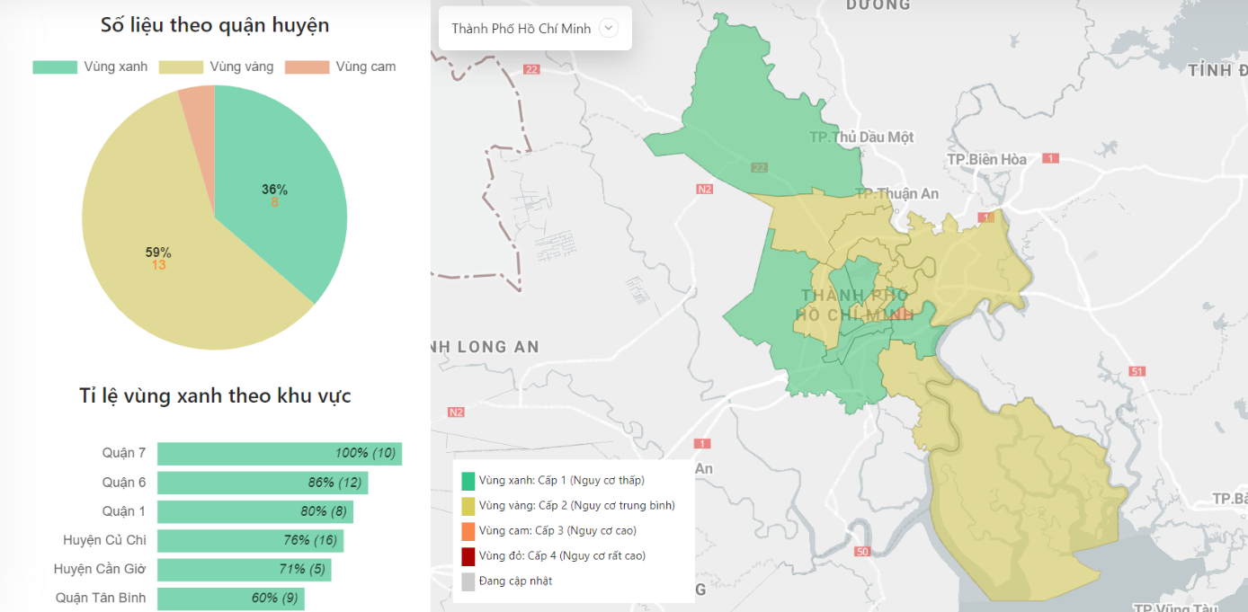 UBND TP.HCM vừa thông báo cấp độ dịch trên địa bàn Thành phố theo Nghị quyết 128 tính đến ngày 9/12. Theo đó, TP.HCM vẫn ở cấp độ 2. Đối với cấp huyện, có 8 địa phương cấp độ 1 là quận 6, 7, 8, Tân Bình, Tân Phú và huyện Bình Chánh, Củ Chi, Hóc Môn. 13 địa phương cấp độ 2 là quận 1, 3, 5, 10, 11, 12, Bình Tân, Bình Thạnh, Gò Vấp, Phú Nhuận, TP Thủ Đức và huyện Cần Giờ, Nhà Bè. Quận 4 vẫn duy trì cấp độ 3. Với cấp phường, xã, thị trấn, có 115/312 địa phương cấp độ 1; 176/312 địa phương cấp độ 2 và 21/312 địa phương cấp độ 3. Như vậy có 36 phường xã giảm cấp độ dịch và 24 phường xã tăng cấp độ dịch so với tuần trước.