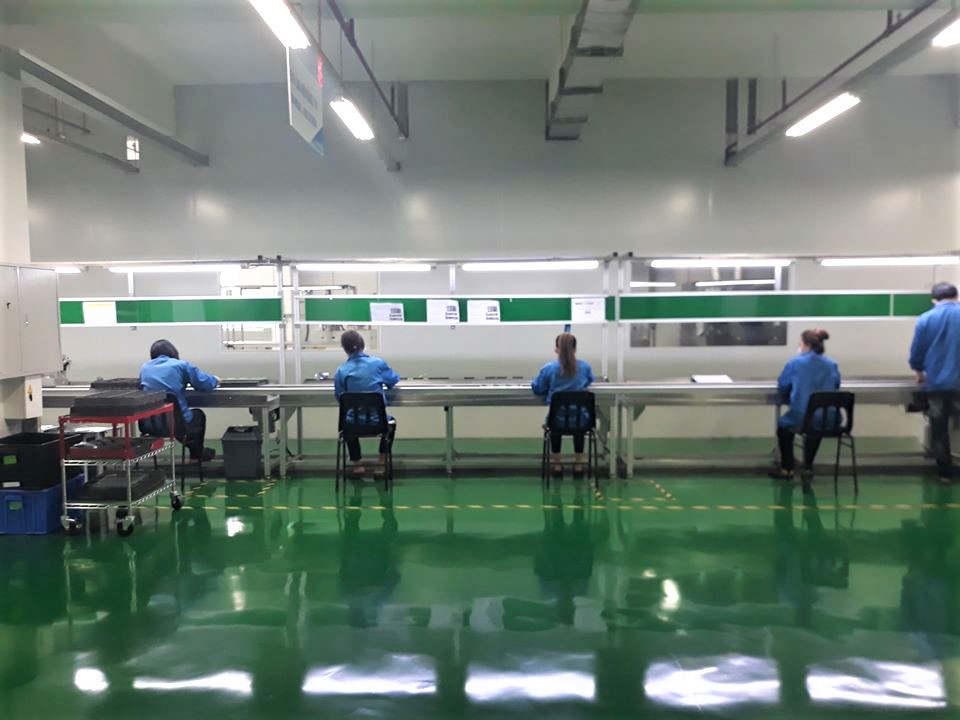 Ảnh: Công nhân đảm bảo khoảng cách tối thiểu 2m khi làm việc tại công ty Vexos