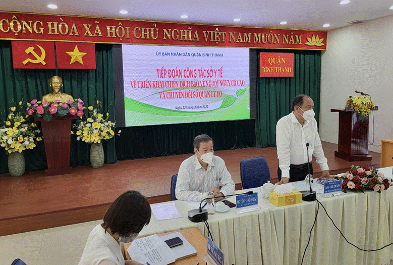 Đó là một trong những kết luận đạt được sự đồng thuận cao trong buổi làm việc đánh giá kết quả triển khai đợt cao điểm của Chiến lược bảo vệ người thuộc nhóm nguy cơ giữa lãnh đạo Sở Y tế, Sở Thông tin và Truyền thông và UBND quận Bình Thạnh chiều ngày 22/03/2022.