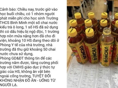 Nhiều học sinh nghi ngộ độc thực phẩm sau khi dùng nước ngọt đóng chai được phát miễn phí ngoài cổng trường.