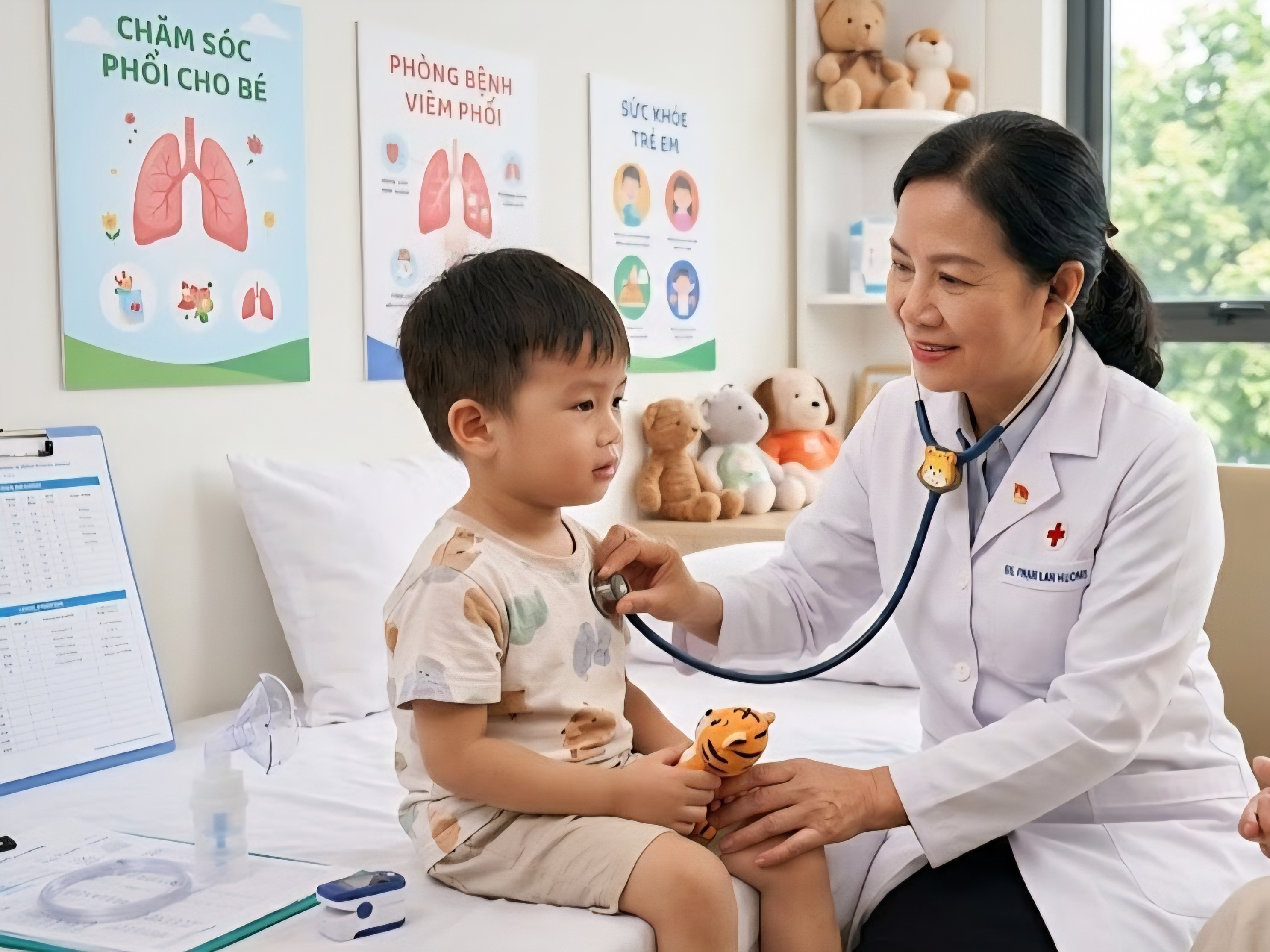 Cách nhận biết dấu hiệu viêm phổi ở trẻ em và lưu ý khi dùng thuốc điều trị viêm phổi cho trẻ tại nhà dành cho phụ huynh.