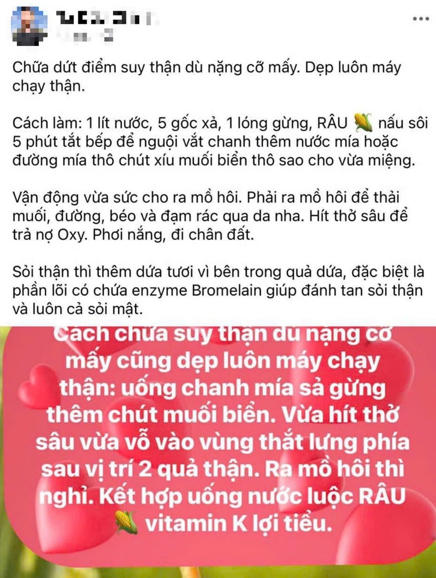 Chuyên gia về y tế cho rằng phương pháp uống nước chanh, mía, sả, gừng và muối biển chữa suy thận là hoàn toàn sai lầm và có thể gây tổn hại trầm trọng đến sức khỏe, kể cả ở người khỏe mạnh chưa có tiền sử bệnh thận, tăng huyết áp.