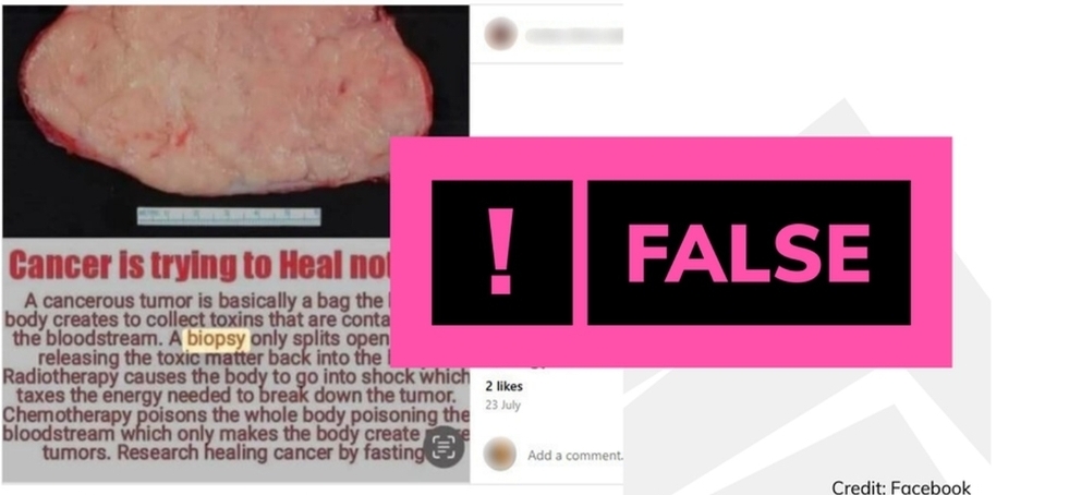 Gần đây, trên Facebook và Instagram lan truyền thông tin cho rằng: "Ung thư không phải bệnh chết người mà là cơ chế tự chữa lành. Khối u chỉ là túi gom độc tố trong máu, còn sinh thiết sẽ làm rách túi, giải phóng độc tố trở lại cơ thể".