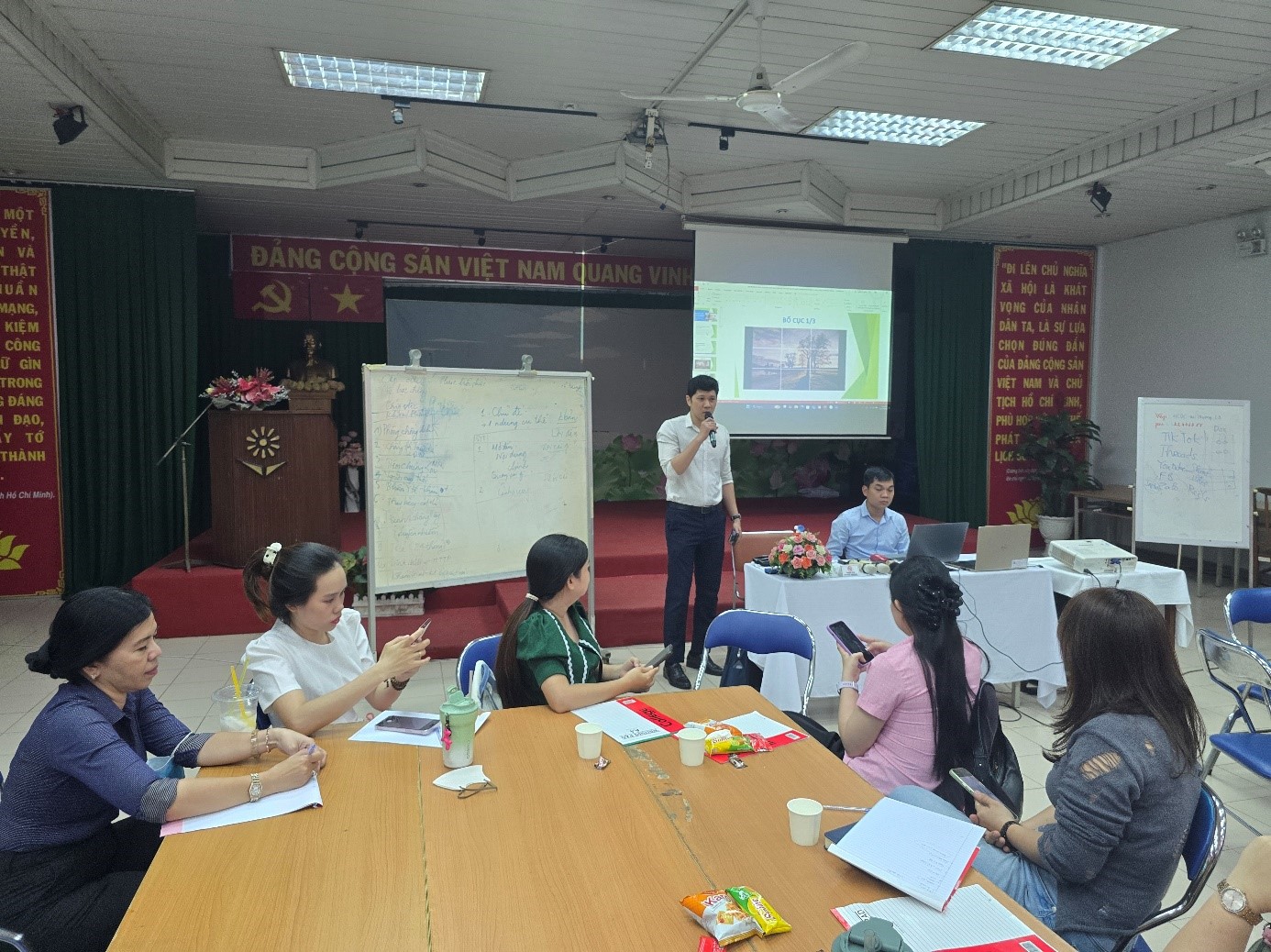 Ảnh: Giảng viên hướng dẫn học viên xây dựng nội dung truyền thông