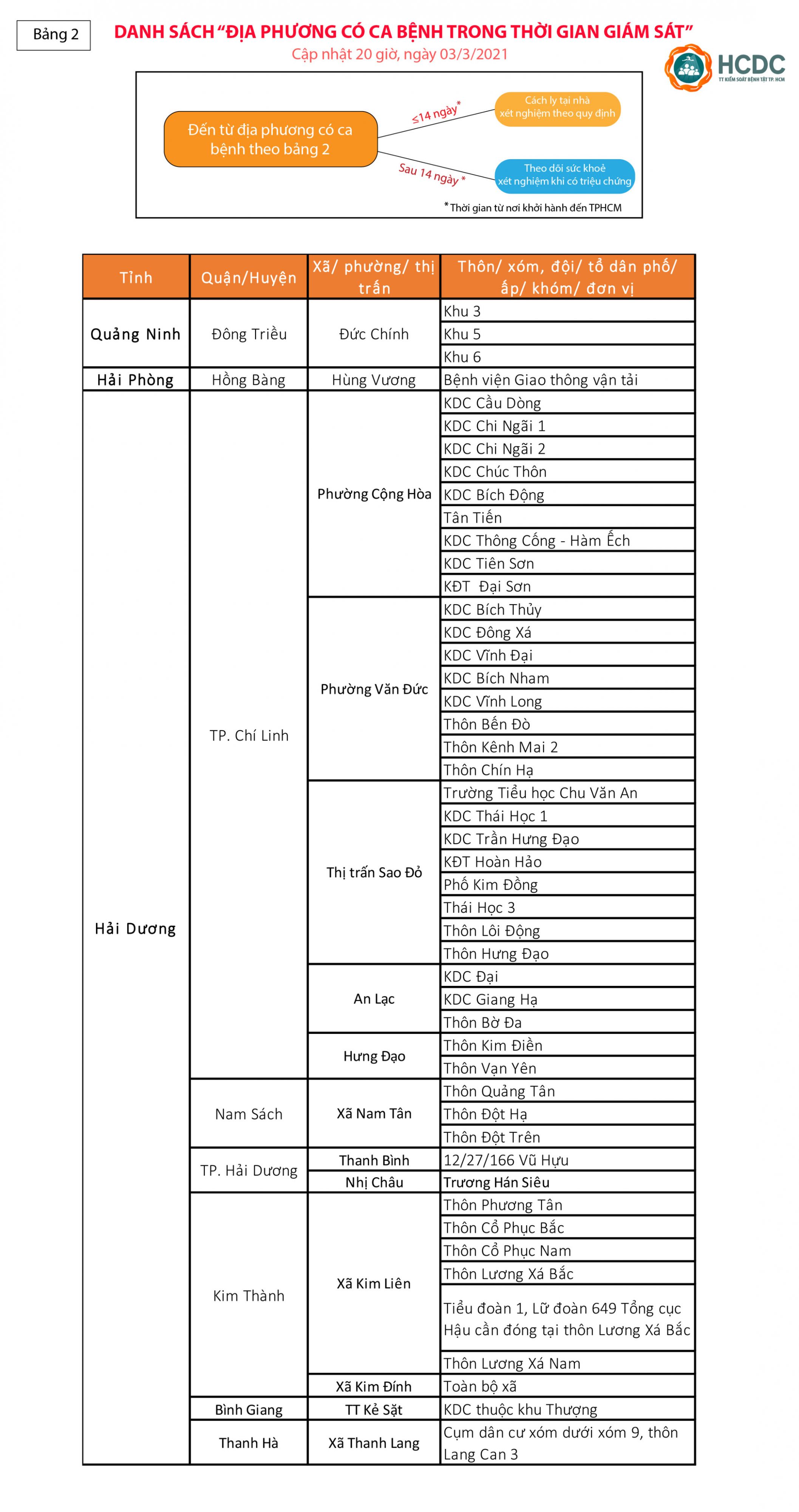 Hướng dẫn giám sát người từ vùng dịch COVID-19 đến Thành phố Hồ Chí Minh - cập nhật lúc 20 giờ, ngày 03/03/2021