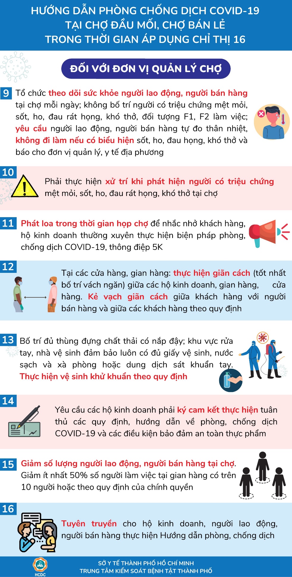 Hướng dẫn phòng chống dịch COVID-19 tại chợ đầu mối, chợ bán lẻ trong thời gian áp dụng Chỉ thị 16 của Thủ tướng Chính phủ
