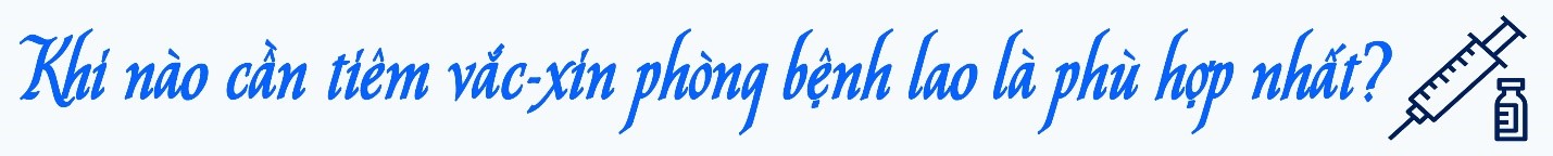 Bộ Y tế khuyến cáo tiêm vắc-xin phòng lao BCG cho trẻ trong vòng 1 tháng đến 1 năm sau sinh. Thực tế, với những trẻ sinh ra có đủ sức khỏe, phát triển ổn định, không nằm trong chế độ chăm sóc đặc biệt thì thường được tiêm phòng lao trong vòng 24h sau sinh. Những trẻ sinh non hoặc có vấn đề về sức khỏe cần theo dõi, chăm sóc đặc biệt thì có thể hoãn tiêm đến khi trẻ có thể trạng tốt, tuy nhiên cần tiến hành tiêm phòng lao cho trẻ càng sớm càng tốt.
