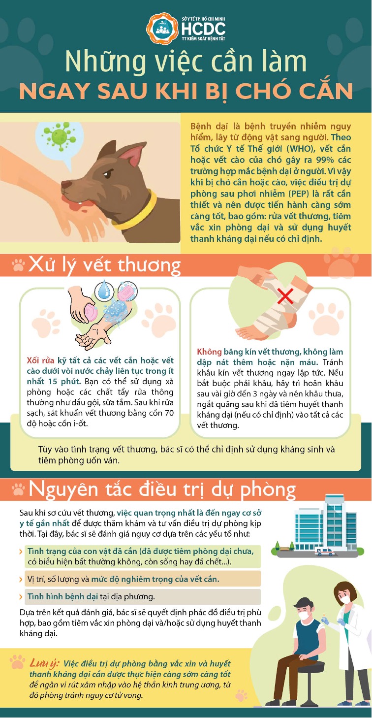 Bệnh dại là bệnh truyền nhiễm nguy hiểm, lây từ động vật sang người. Theo Tổ chức Y tế Thế giới (WHO), vết cắn hoặc vết cào của chó gây ra 99% các trường hợp mắc bệnh dại ở người. Vì vậy khi bị chó cắn hoặc cào, việc điều trị dự phòng sau phơi nhiễm (PEP) là rất cần thiết và nên được tiến hành càng sớm càng tốt, bao gồm: rửa vết thương, tiêm vắc xin phòng dại và sử dụng huyết thanh kháng dại nếu có chỉ định.