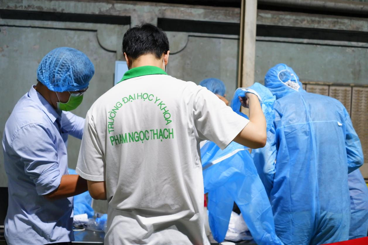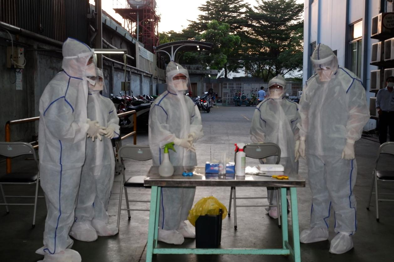 Đoàn lấy mẫu xét nghiệm gồm Trung tâm Y tế quận Tân Phú, Bệnh viện Trưng Vương và nhóm sinh viên hỗ trợ Đại học Y khoa Phạm Ngọc Thạch.