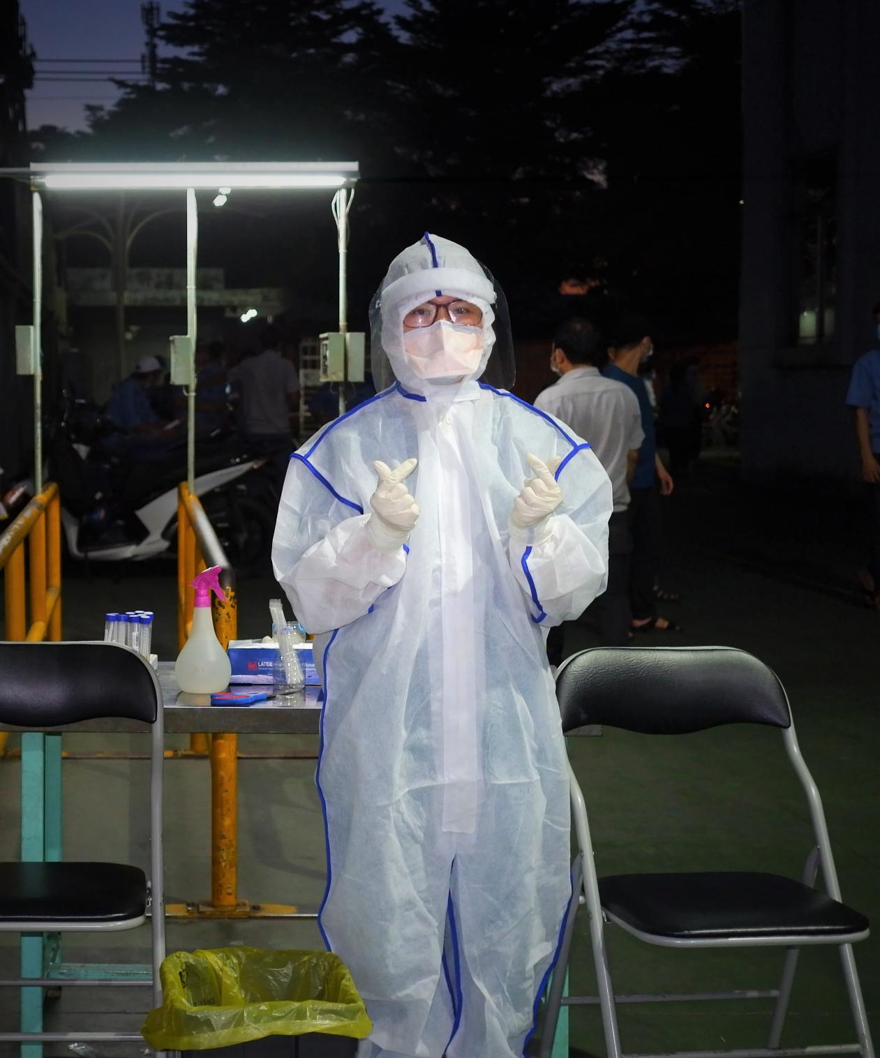 Lúc này trời đã chập choạng tối, số mẫu cần lấy còn nhiều, những nhân viên y tế ở đây càng khẩn trương và không có dấu hiệu mệt mỏi. Họ là những “chiến sĩ” và họ yêu những điều mà họ đang làm.
