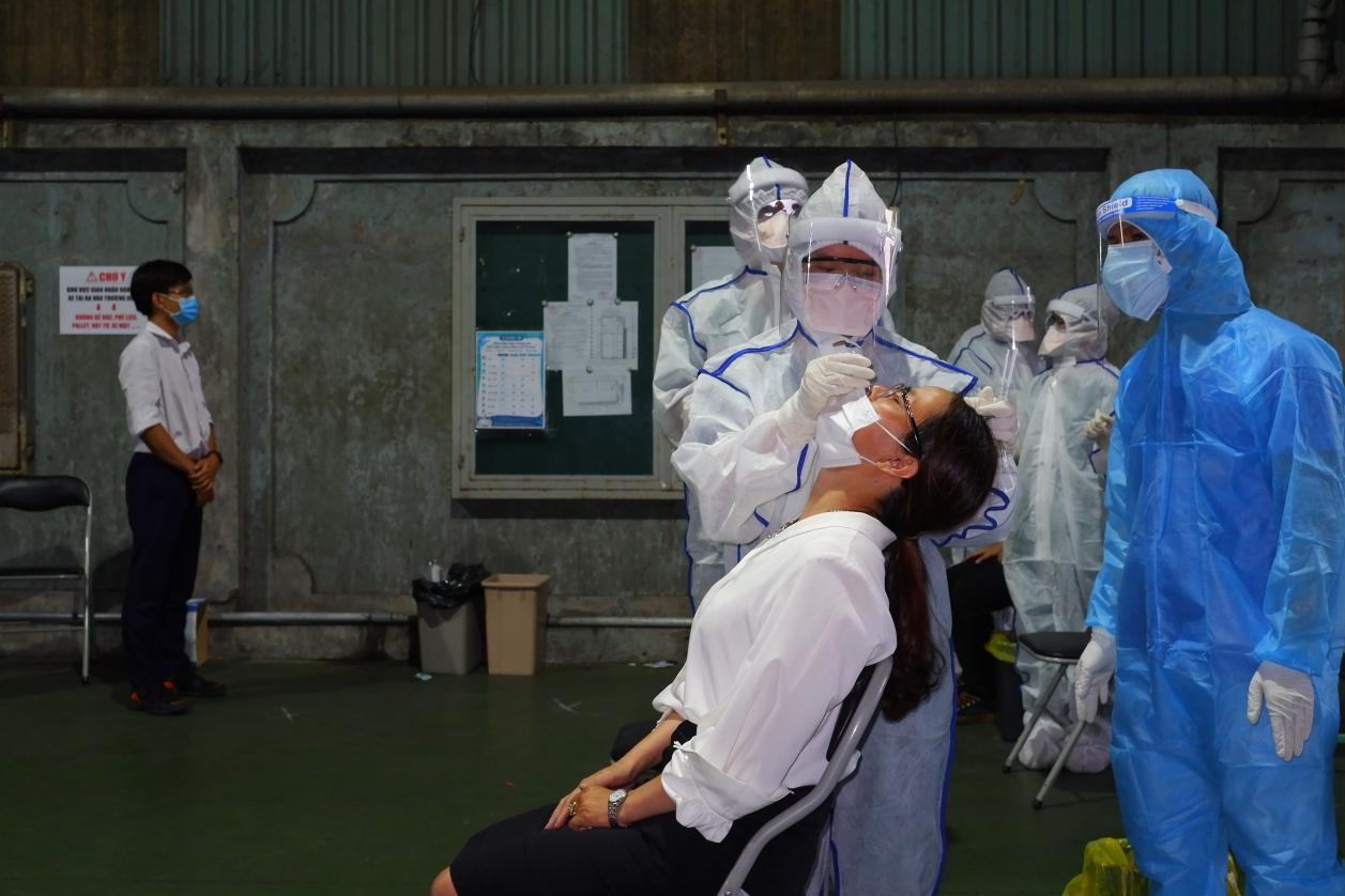 PHÓNG SỰ ẢNH: TP. HCM cấp tốc lấy mẫu xét nghiệm toàn bộ công nhân Công ty Cổ phần Thiết bị Nhà bếp VINA
