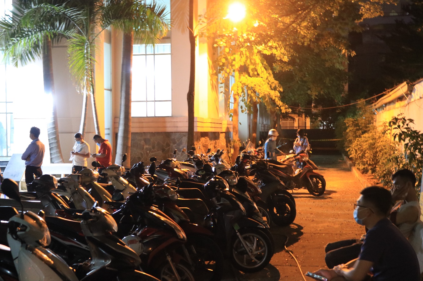 Người đến lấy mẫu được hướng dẫn sắp xếp phương tiện ngăn nắp