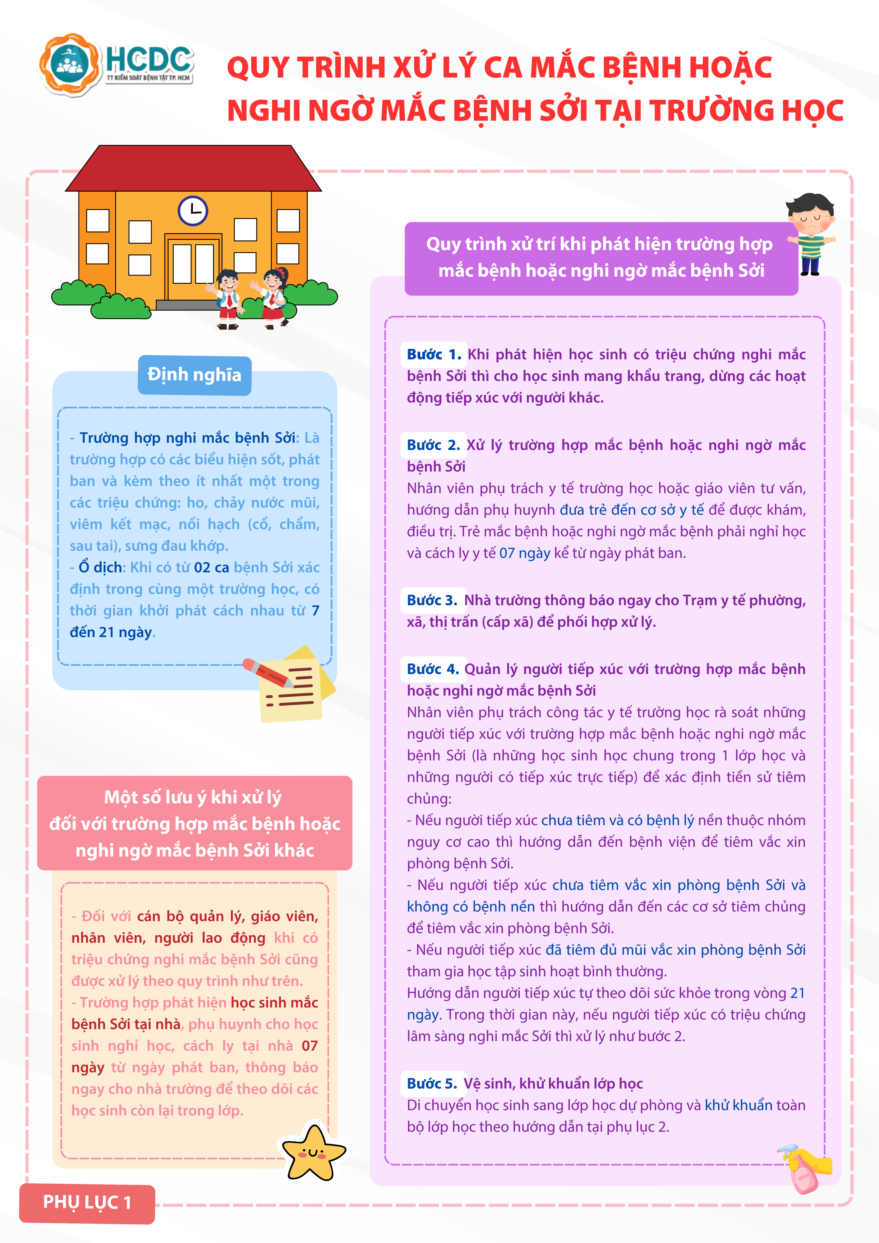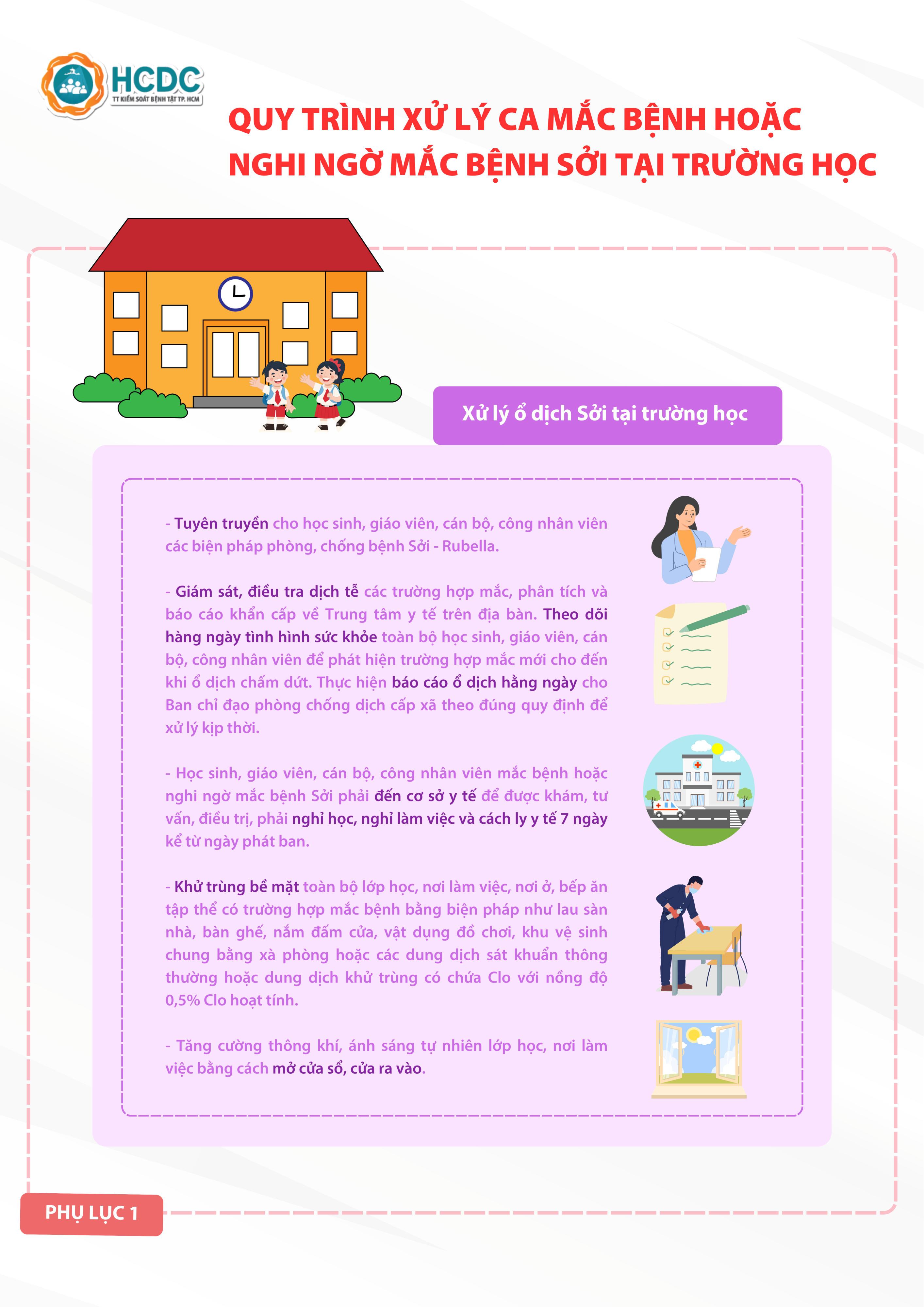 Quy trình xử lý ca mắc/nghi mắc bệnh sởi tại trường học
