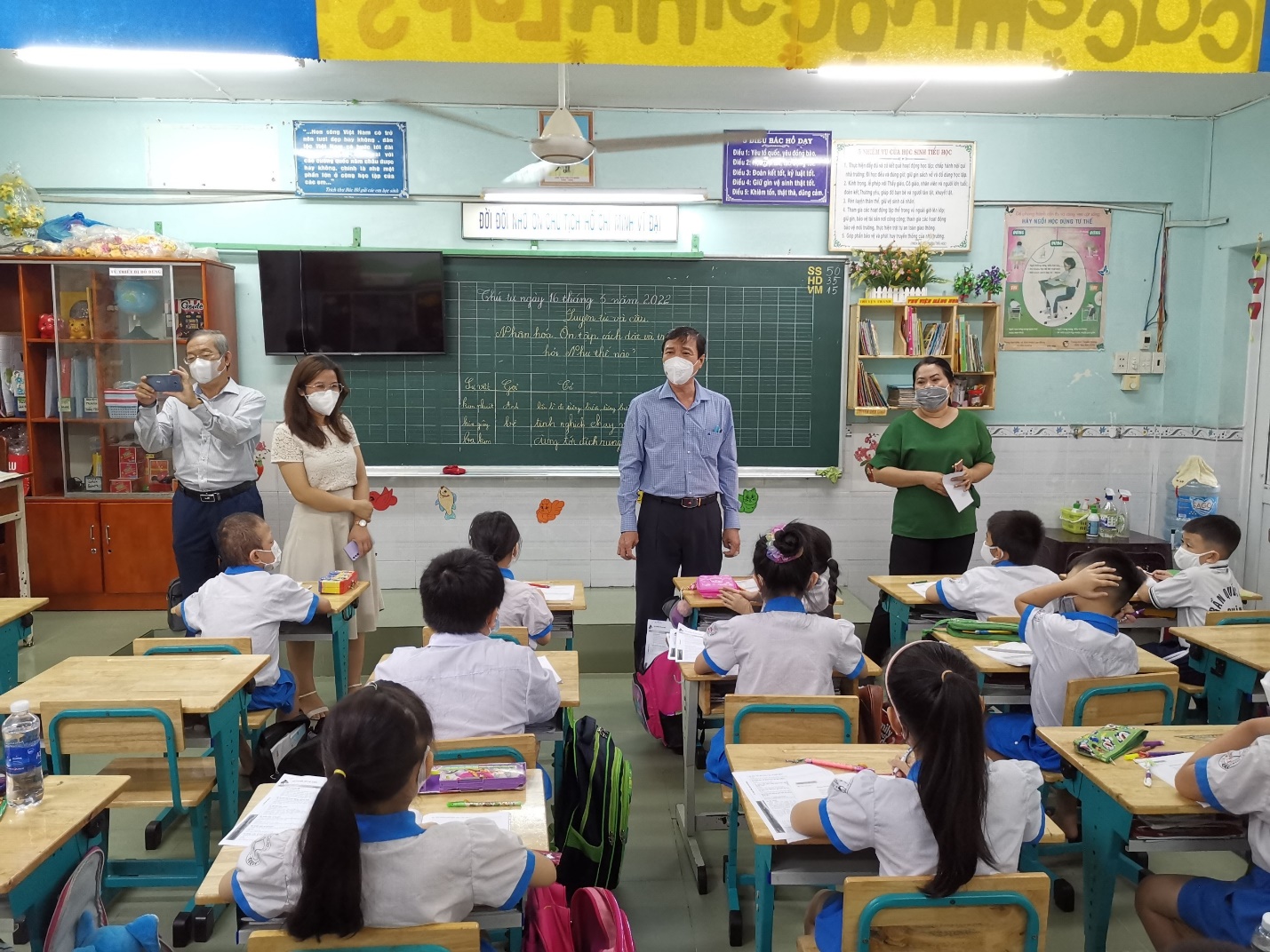 BS.CK2.Nguyễn Hữu Hưng, Phó Giám đốc Sở Y tế kiểm tra thực tế trong lớp học