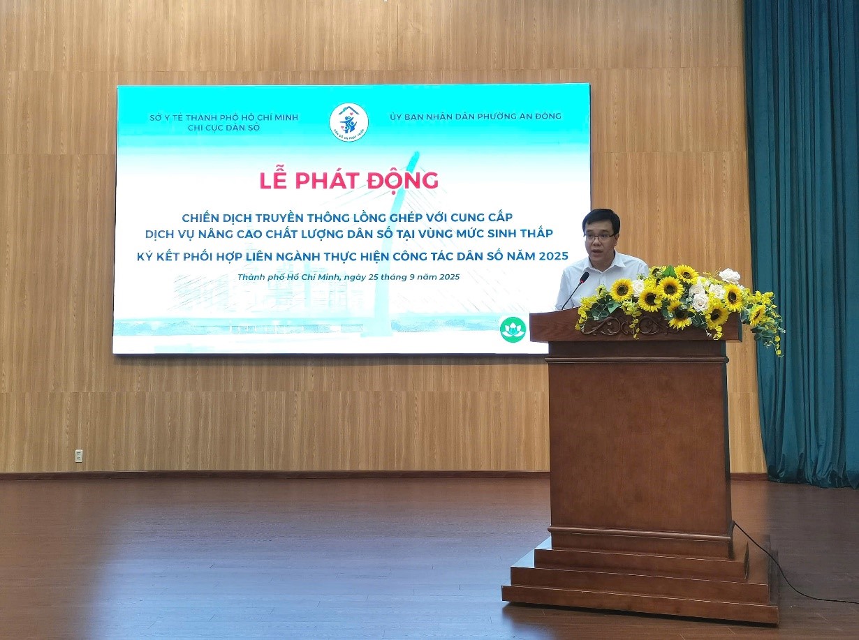 Sáng ngày 25/9/2025, Sở Y tế và Chi cục Dân số Thành phố Hồ Chí Minh phối hợp với Ủy ban nhân dân phương An Đông tổ chức Lễ phát động Chiến dịch truyền thông lồng ghép với cung cấp dịch vụ nâng cao chất lượng Dân số tại vùng mức sinh thấp năm 2025 trên địa bàn Thành phố.