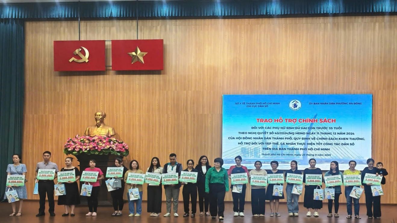 Tại Lễ phát động, ông Bùi Chí Tình, Phó Giám đốc Sở Y tế Thành phố Hồ Chí Minh cũng kêu gọi mỗi người dân Thành phố cùng chung tay, đồng tình ủng hộ thực hiện thông điệp “Mỗi gia đình, mỗi cặp vợ chồng sinh đủ hai con”. Theo đó tại chương trình, Chi cục Dân số và các ban, ngành, đoàn thể cũng đã ký kết liên tịch phối hợp triển khai thực hiện công tác dân số năm 2025 trên địa bàn Thành phố, thể hiện sự đồng lòng, cam kết phối hợp chặt chẽ, đa dạng hóa hình thức truyền thông và hỗ trợ người dân một cách toàn diện nhất. Đặc biệt, chương trình còn tổ chức trao hỗ trợ chính sách đối với các phụ nữ sinh đủ hai con trước 35 tuổi theo Nghị quyết số 40/2024/NQ-HĐND ngày 11/12/2024 của Hội đồng nhân dân Thành phố. Đây là động thái cụ thể hóa các chính sách khuyến khích sinh đủ hai con tại vùng mức sinh thấp, góp phần giảm bớt gánh nặng tài chính và khích lệ các gia đình trẻ.