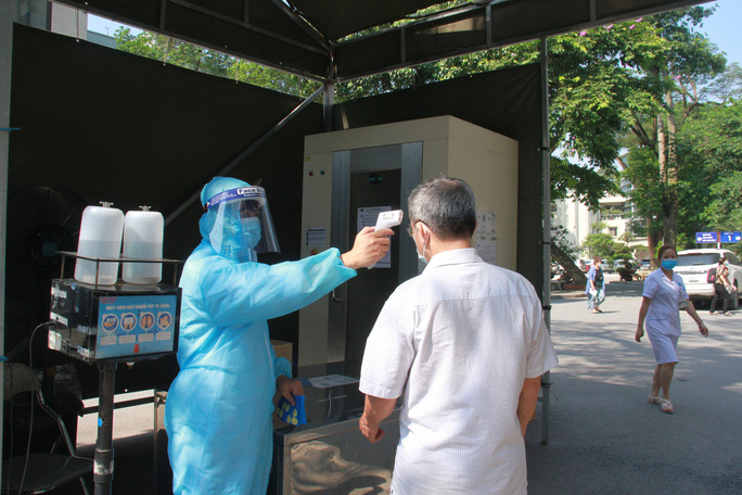 Đo thân nhiệt cho người dân trước khi vào cơ sở y tế
