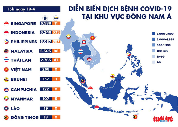 4/ Dịch COVID-19 chiều 19-4: Việt Nam không có ca bệnh mới, Singapore nhiều ca nhiễm nhất Đông Nam Á