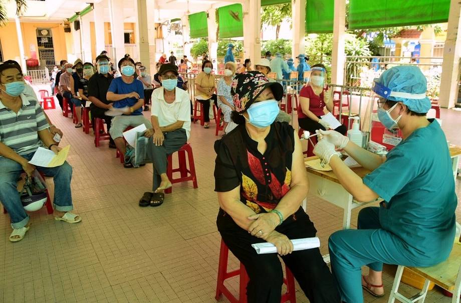 Người dân tiêm vaccine Pfizer mũi 2 tại phường 14, quận Bình Thạnh