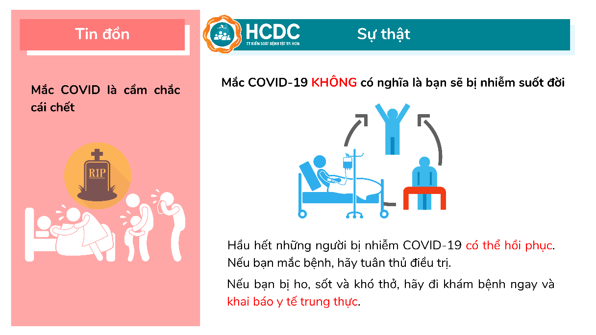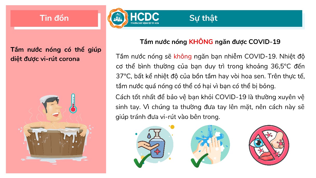 Hãy cùng HCDC tìm hiểu những tin đồn và sự thật về dịch COVID-19 và chia sẻ rộng rãi để mọi người cùng biết nhé!Dịch bệnh sẽ được kiểm soát và ngăn chặn nếu có sự đồng lòng, quyết tâm của mọi tầng lớp nhân dân và cả hệ thống chính trị.