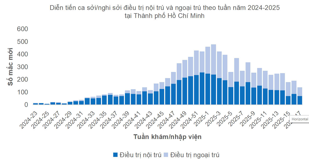 Tình hình dịch bệnh sốt xuất huyết, tay chân miệng và sởi tại TP. Hồ Chí Minh tính đến tuần 17/2025