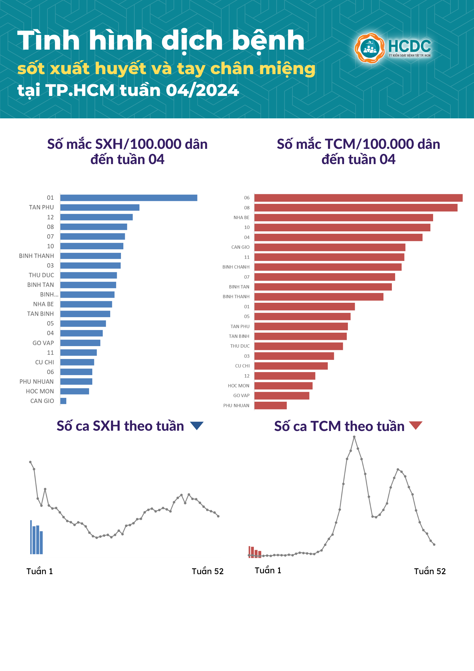 Tình hình dịch bệnh sốt xuất huyết và tay chân miệng tại TP. Hồ Chí Minh tính đến tuần 04/2024