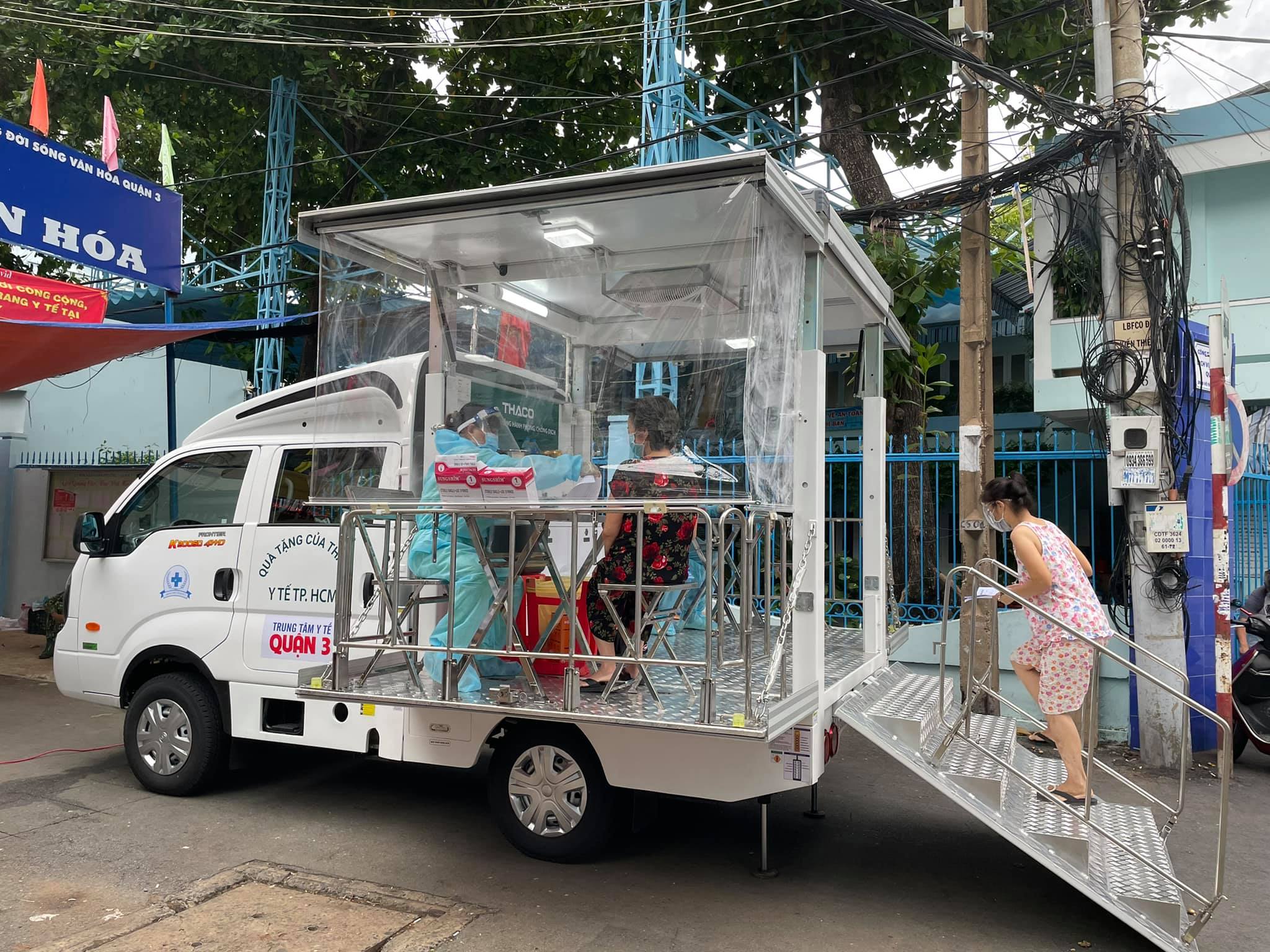 Tại Quận 3, việc tiêm vắc xin được tổ chức vô cùng linh hoạt. Ngoài những điểm tiêm cố định, Quận còn sử dụng xe tiêm lưu động, tập trung triển khai tại các khu nhà trọ, để đảm bảo người tạm trú cũng được phủ vắc xin. Đối với các đối tượng yếu thế, khó di chuyển đến điểm tiêm chủng như người cao tuổi, bại liệt, tàn tật…. sẽ được linh động tổ chức các đội tiêm chủng tại nhà.