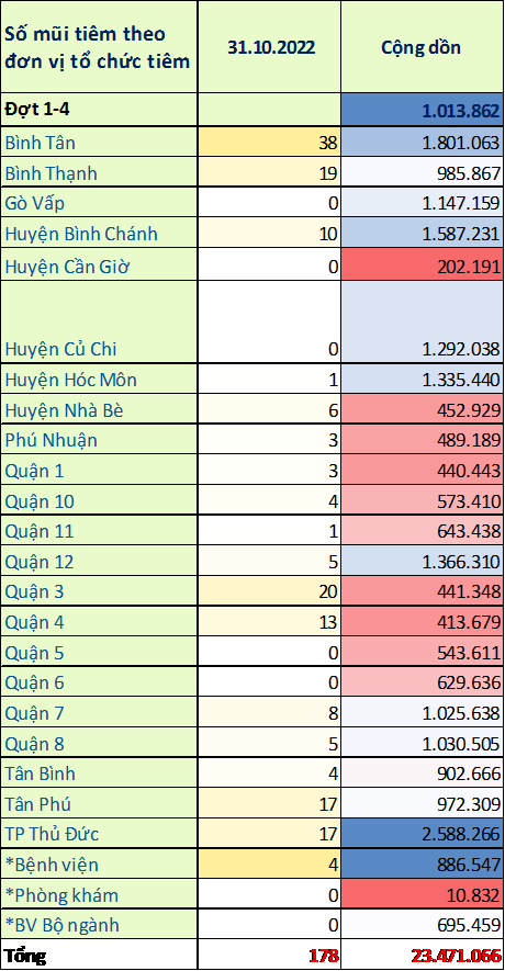 TP. Hồ Chí Minh: Cập nhật số liệu tiêm chủng vắc-xin phòng chống COVID-19 ngày 31/10/2022