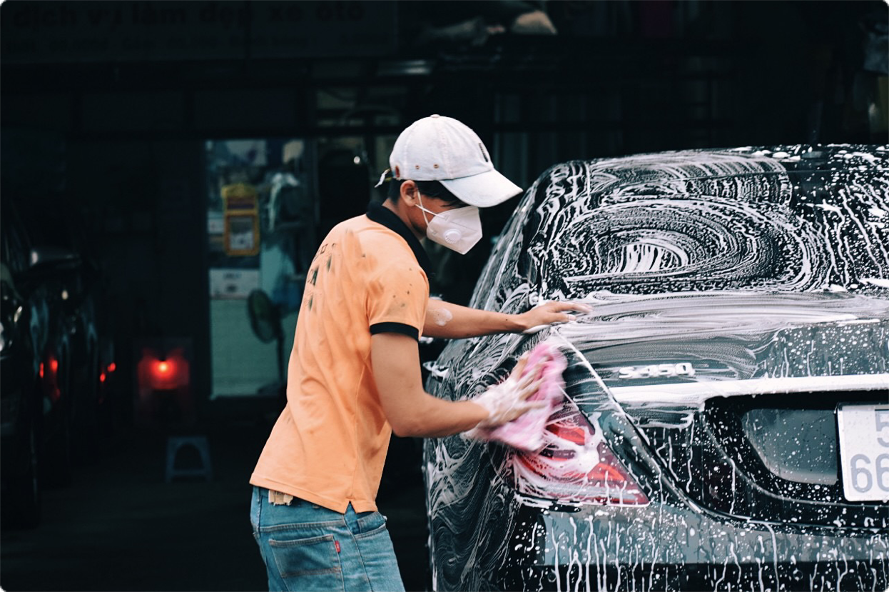 Các cửa hàng rửa xe cũng tấp nập khách hàng trong ngày đầu tiên trở lại trạng thái “Bình thường mới”