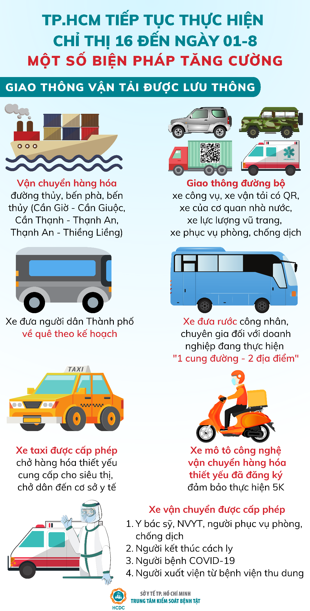 Trước tình hình cấp bách do chủng vi-rút mới Delta diễn biến nhanh, mạnh, khó lường, để thực hiện bằng được mục tiêu bảo vệ tính mạng, sức khỏe của người dân TP, ngăn chặn số ca nhiễm mới, hạn chế tối đa trường hợp tử vong, bảo vệ hệ thống y tế và khả năng điều trị, cứu chữa bệnh nhân, TP.HCM tiếp tục thực hiện giãn cách xã hội theo Chỉ thị 16 của Thủ tướng Chính phủ từ 0 giờ ngày 24/7 đến hết ngày 01/8 và tăng cường thêm một số biện pháp. Bảo đảm giãn cách giữa cá nhân với cá nhân, gia đình với gia đình; thực hiện nghiêm quy định tại các khu cách ly, khu phong tỏa.