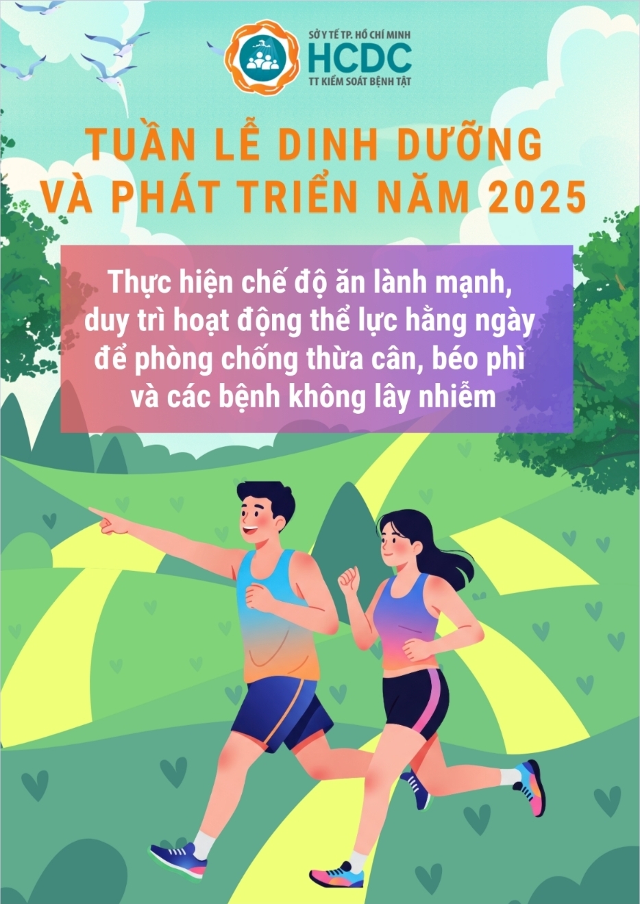 Tuần lễ Dinh dưỡng và Phát triển năm 2025 với chủ đề “Thực hiện chế độ ăn lành mạnh, duy trì hoạt động thể lực hằng ngày để phòng chống thừa cân, béo phì và các bệnh không lây nhiễm” kêu gọi toàn thể cộng đồng cùng hành động vì sức khỏe. Mỗi bữa ăn đủ dinh dưỡng và mỗi ngày vận động đều đặn chính là nền tảng cho cuộc sống khỏe mạnh, năng động và hạnh phúc hơn.