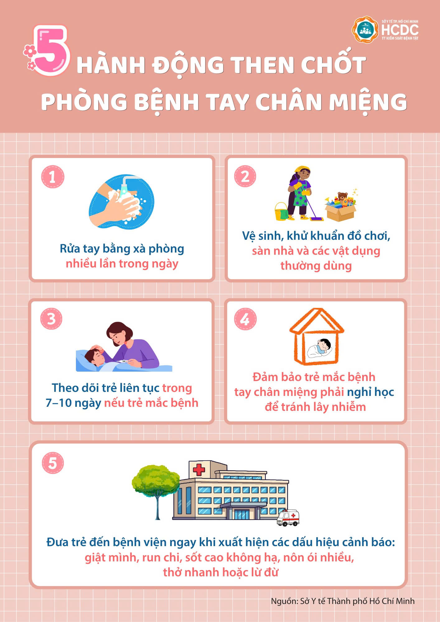 Người dân được khuyến cáo thực hiện 5 hành động then chốt để phòng bệnh và bảo vệ trẻ sau đây.