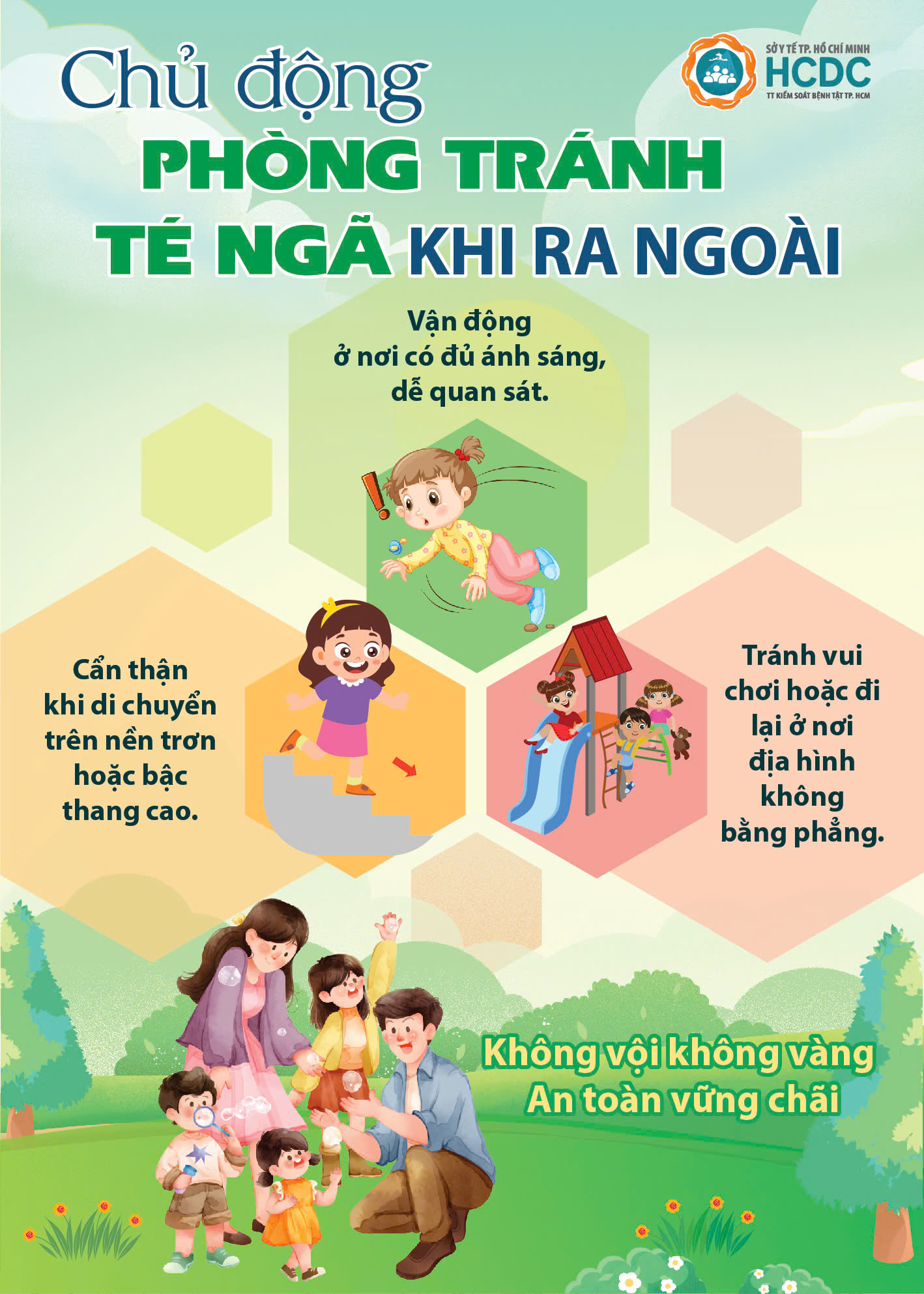 Té ngã không chỉ xảy ra trong nhà mà còn tiềm ẩn ở nhiều nơi ngoài trời như vỉa hè, bến xe, công viên hay công trình xây dựng. Để mỗi bước chân luôn an toàn, HCDC khuyến khích bạn chủ động thực hiện các biện pháp phòng tránh té ngã khi di chuyển và sinh hoạt ngoài trời.