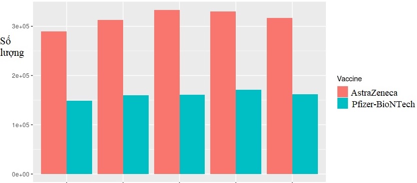 Hình 2. Sự phân bố số người được tiêm chủng một liều cho đến ngày 01/4/2021 tại Scotland theo loại vắc xin
