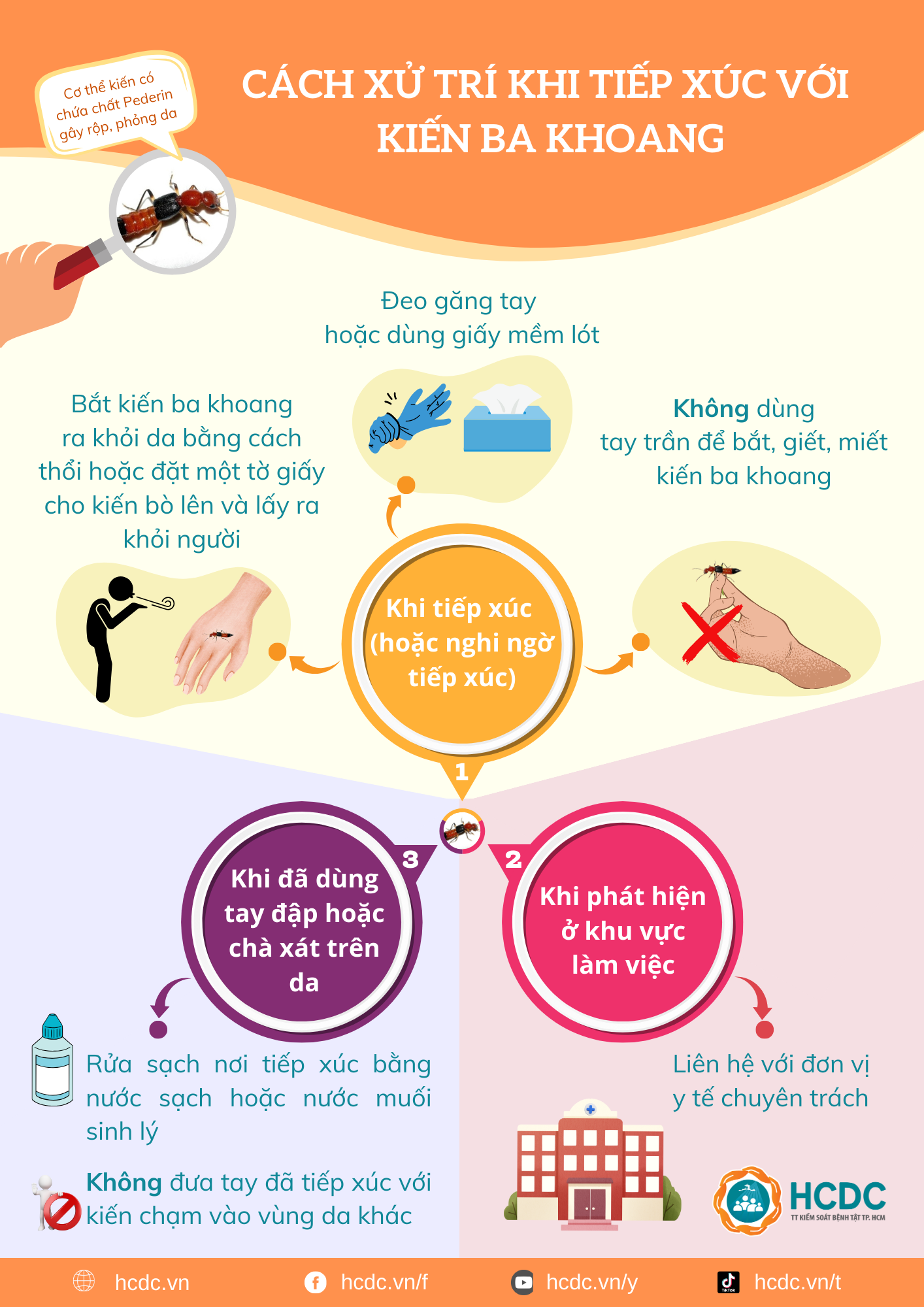 Kiến ba khoang thường bị thu hút bởi ánh sáng đèn, xâm nhập vào nhà và đậu lên quần áo, giường chiếu, chăn màn. Trong quá trình sinh hoạt, người dân vô tình tiếp xúc với chúng, dẫn đến việc chất độc (Pederin) trong cơ thể kiến ba khoang gây viêm và loét da. Nếu phát hiện kiến ba khoang trong nhà hoặc tiếp xúc với chúng, người dân cần lưu ý những điều sau:
