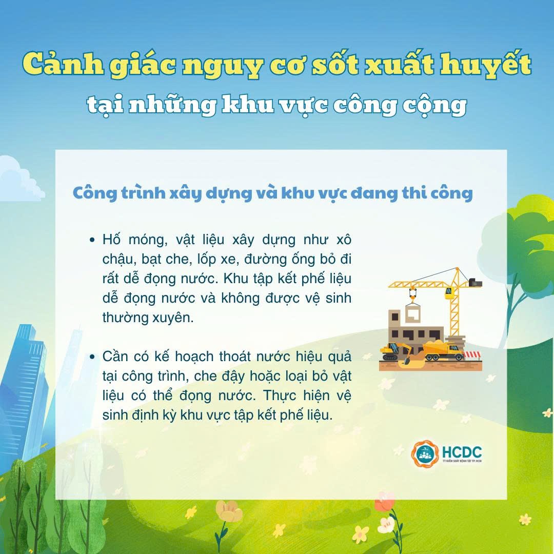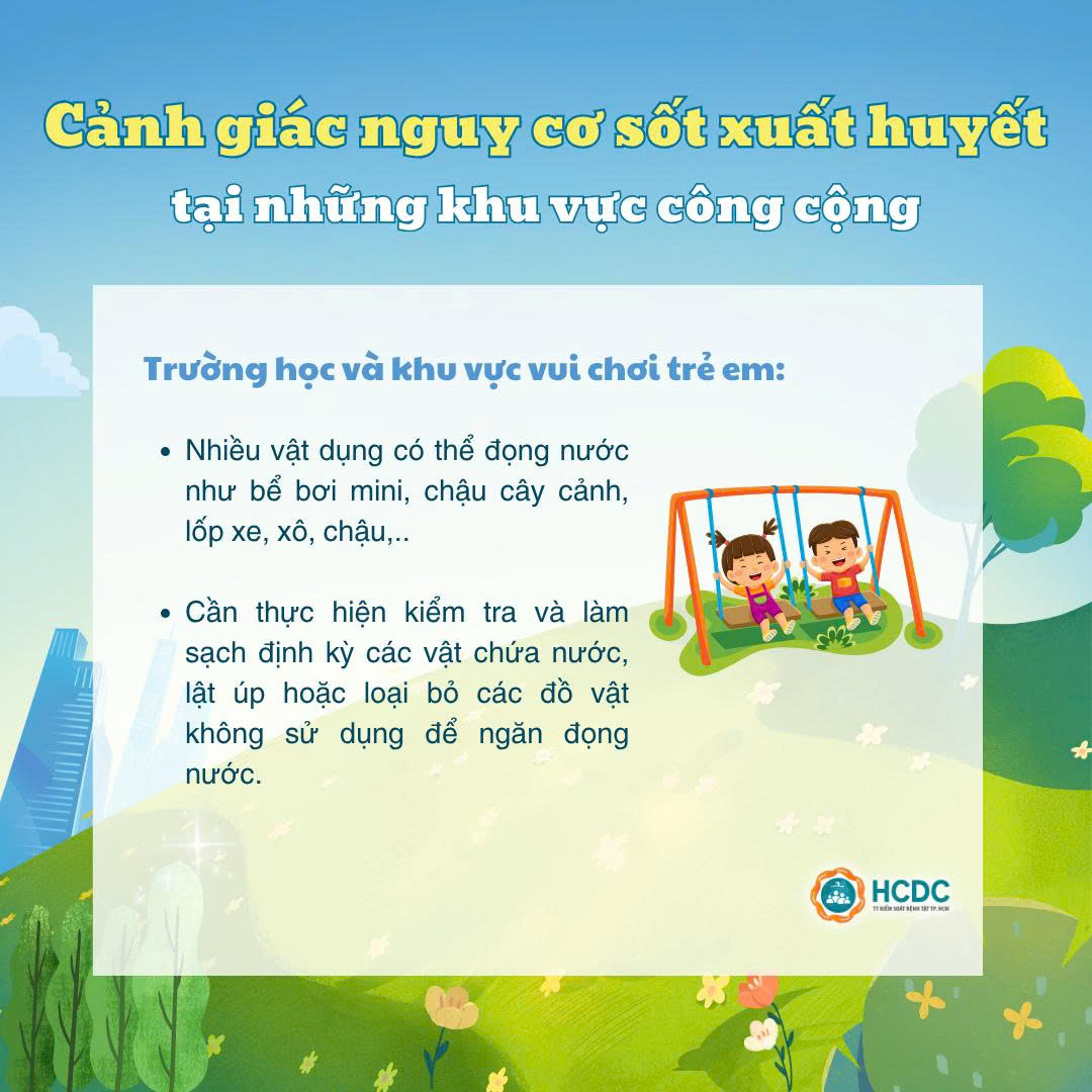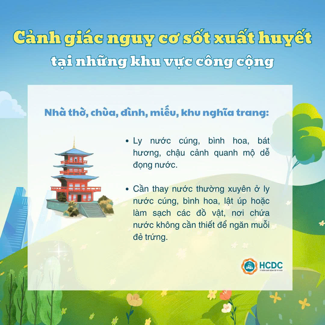 Bên cạnh đó, những khu vực công cộng cũng là những điểm nguy cơ có thể phát sinh lăng quăng gây bệnh sốt xuất huyết. Hãy cùng HCDC điểm qua các khu vực công cộng mà chúng ta cần đặc biệt lưu ý để phòng tránh dịch bệnh nhé!