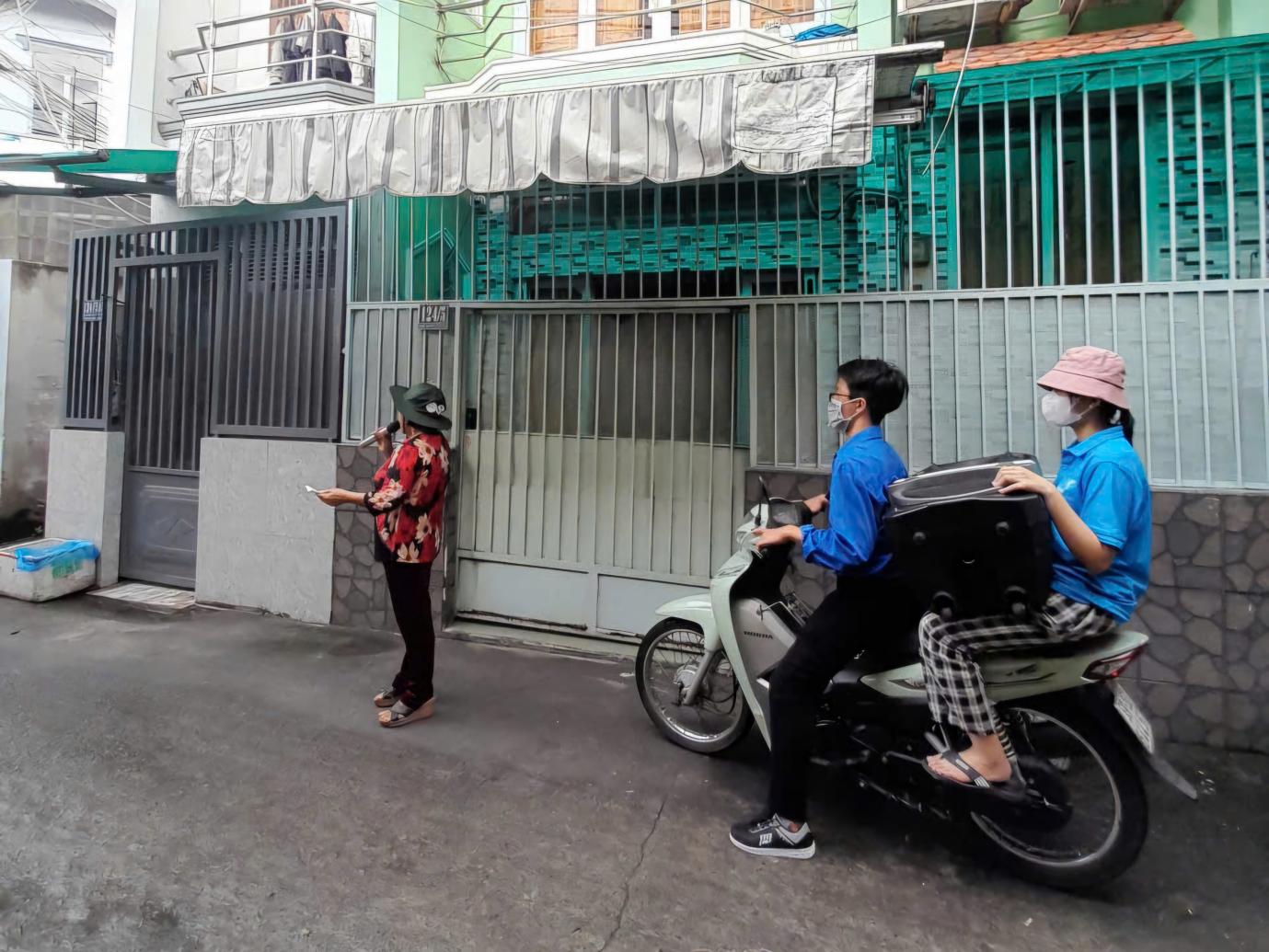 Ảnh: Cộng tác viên sức khỏe cộng đồng tại Quận 7 đến từng hẻm để vận động người dân đưa trẻ đi tiêm vắc xin sởi