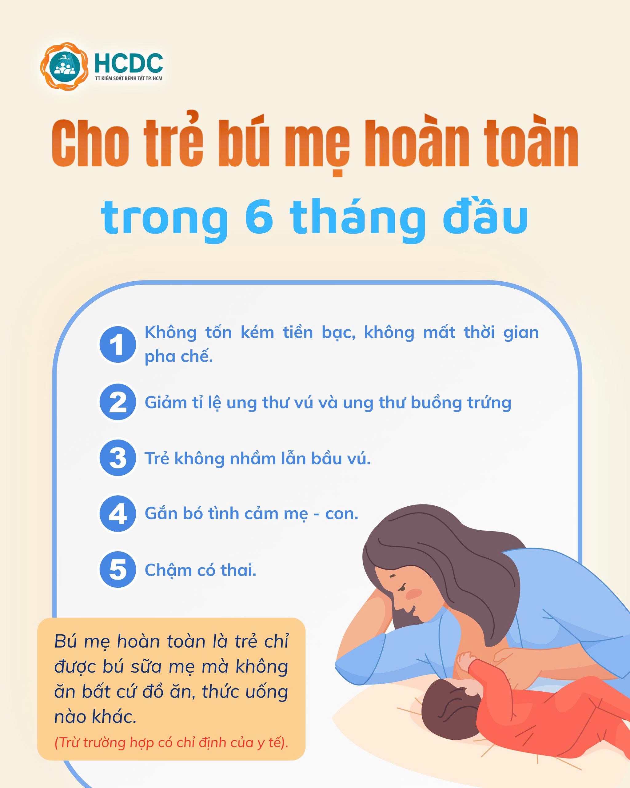 Cho trẻ bú mẹ hoàn toàn trong 6 tháng đầu