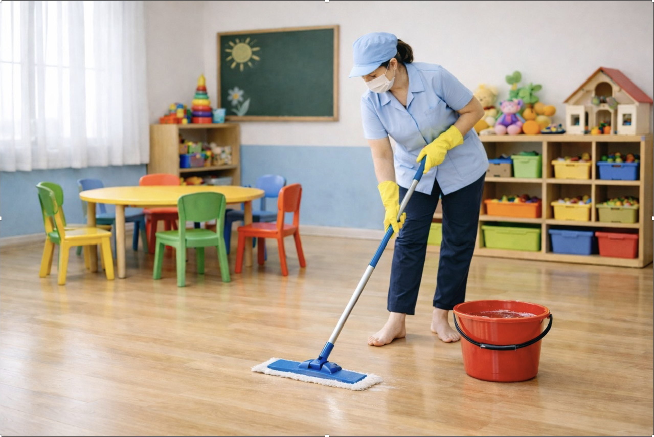 Ảnh: Vệ sinh, lau sàn lớp học thường xuyên để phòng bệnh tay chân miệng