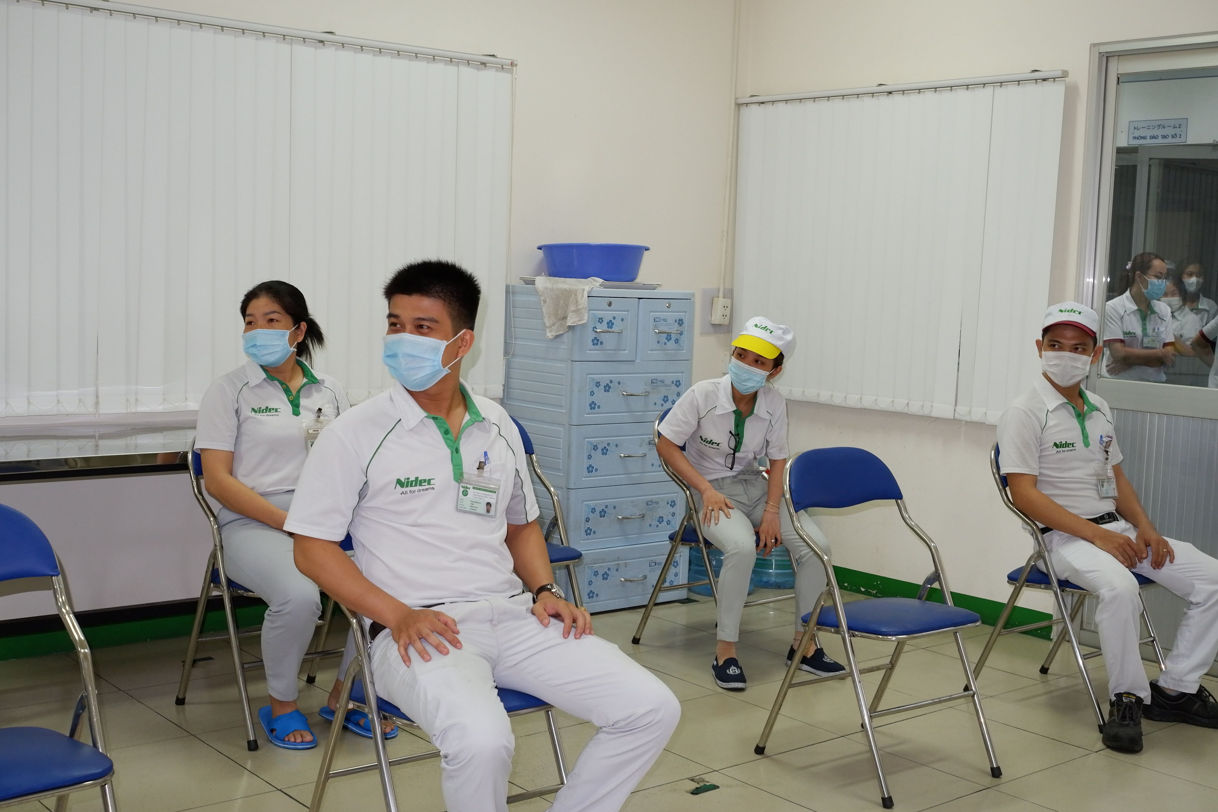 Nhân viên y tế thực hiện lấy mẫu xét nghiệm SARS-CoV-2 cho người lao động tại Công ty Nidec Tosok