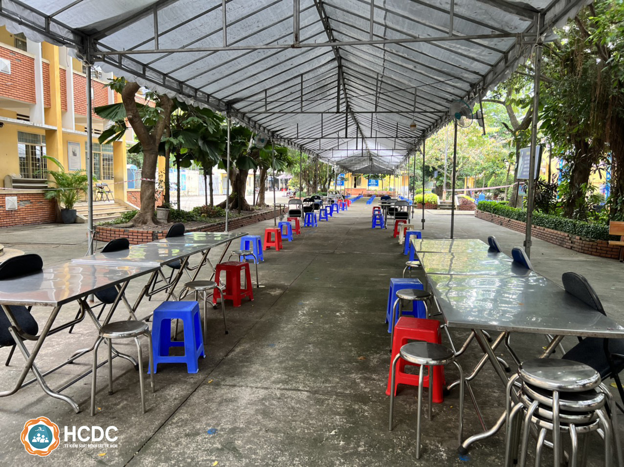 Ảnh: Công tác chuẩn bị trước tiêm tại trường học.