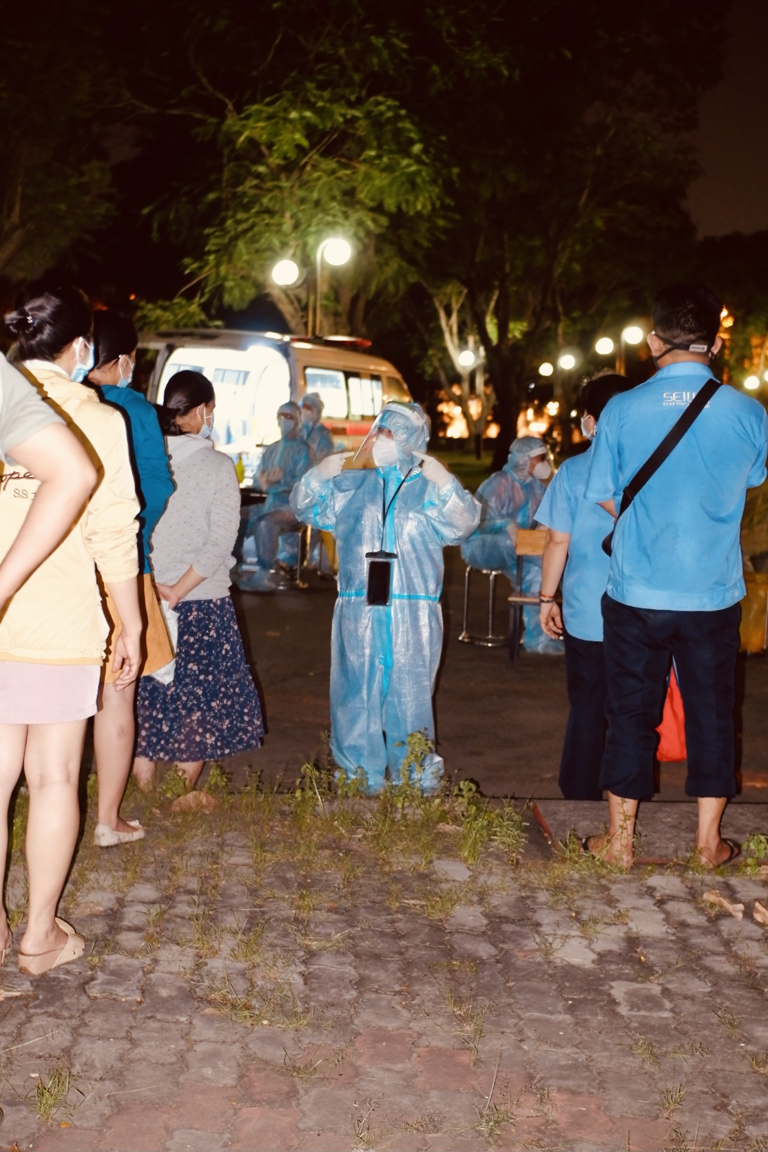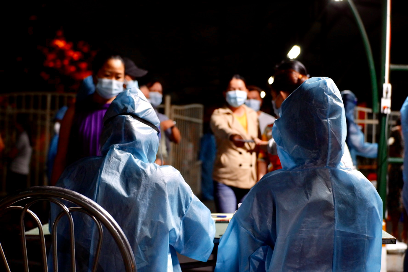 Công tác lấy mẫu xét nghiệm phải đảm bảo hoàn thành trong ngày. Nhân viên y tế đã làm xuyên suốt thời gian không nghỉ ngơi để thực hiện việc lấy 50.000 mẫu tại khu chế xuất Tân Thuận