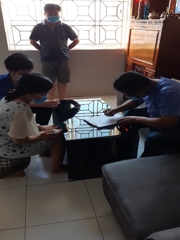 Ảnh: nhân viên y tế lấy thông tin người cách ly tại nhà
