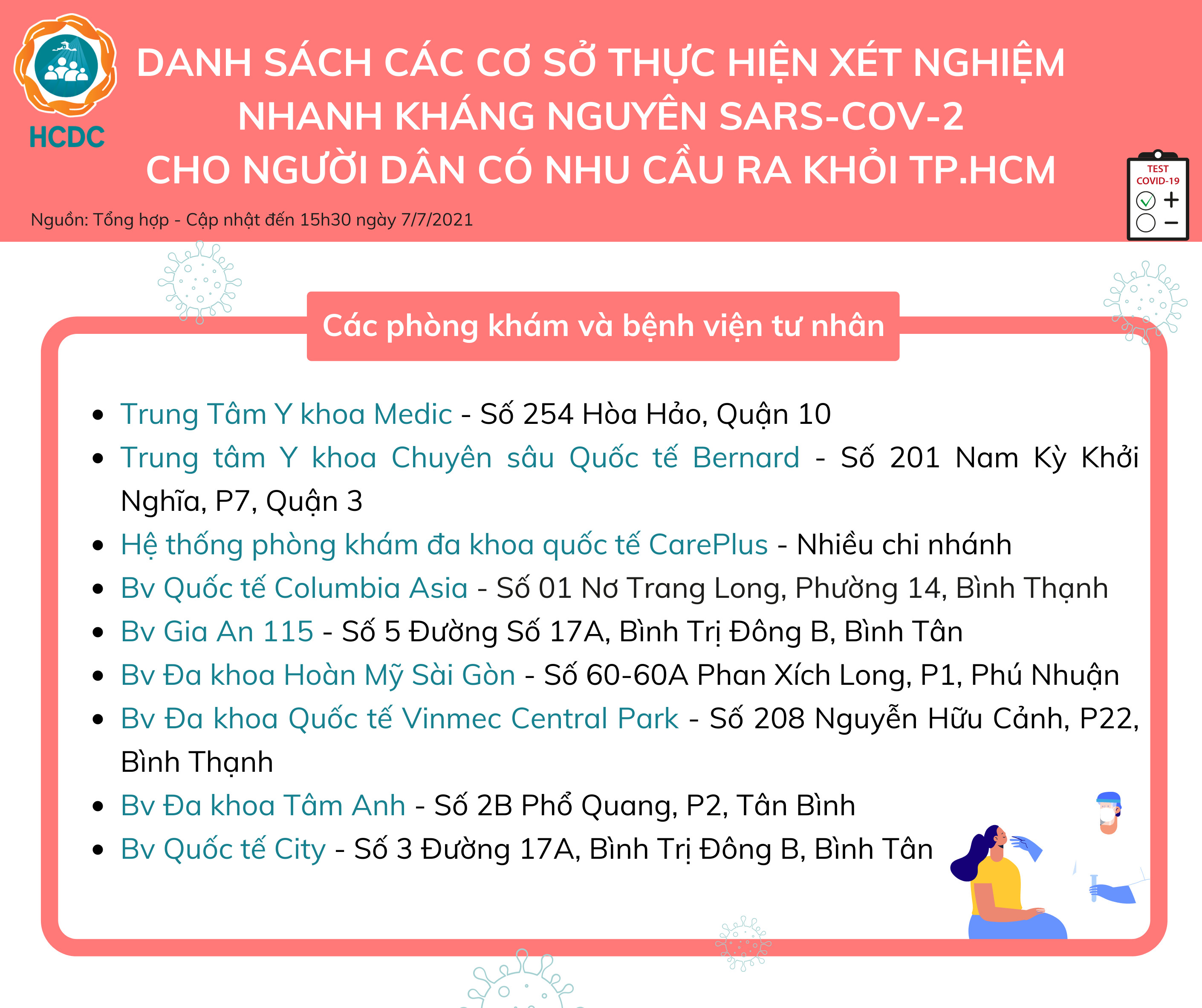 Danh sách các đơn vị thực hiện xét nghiệm COVID-19 tại TP. Hồ Chí Minh