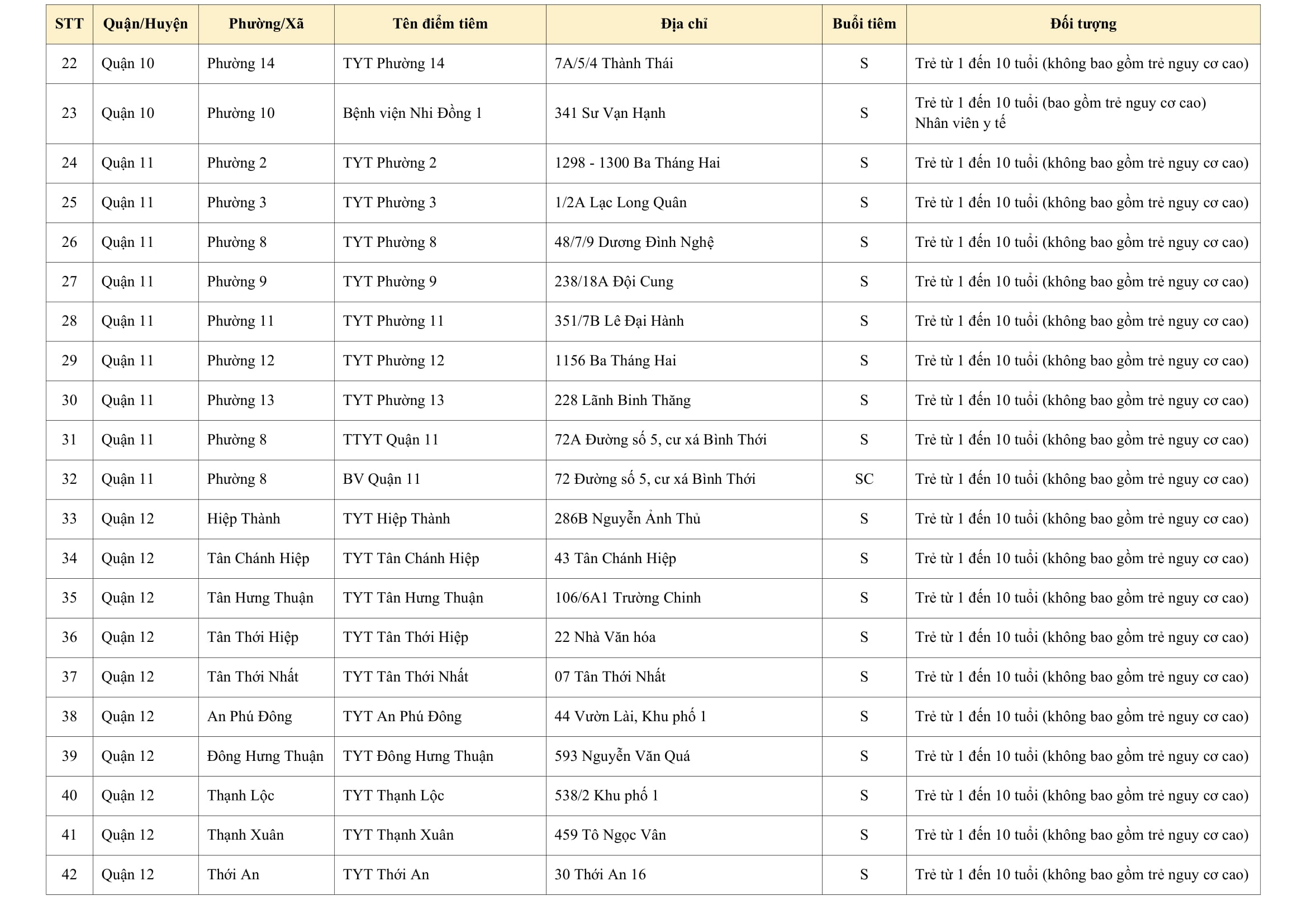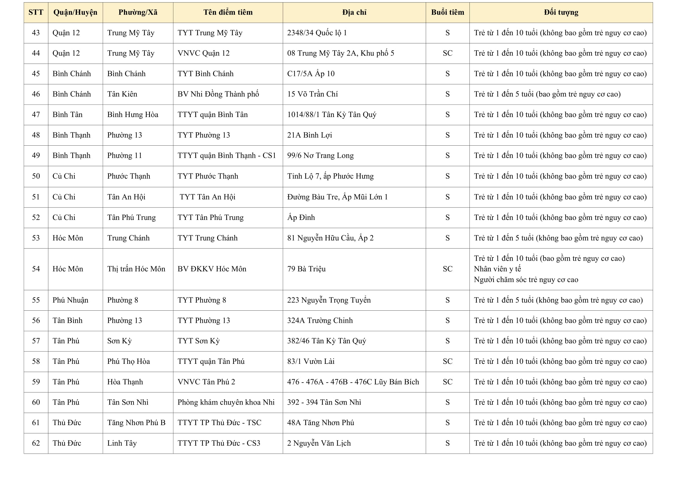 Danh sách điểm tiêm có thể được cập nhật thêm hàng ngày. Truy cập link https://hcdc.vn/soi, vào thư mục "Danh sách điểm tiêm" để cập nhật danh sách điểm tiêm mới nhất.