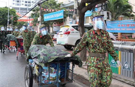 Trong đại dịch Covid-19, đồng bào, nhân dân TPHCM không thể quên hình ảnh thân thương, gần gũi của những người lính đứng gác trên mọi nẻo đường của thành phố. Có những giai đoạn dịch bệnh căng thẳng, các anh đẩy xe, vác từng bao lương thực, thực phẩm lội mưa, đội nắng vào từng ngõ, gõ từng nhà để người dân có được bữa ăn tươm tất khi thực hiện giãn cách xã hội.